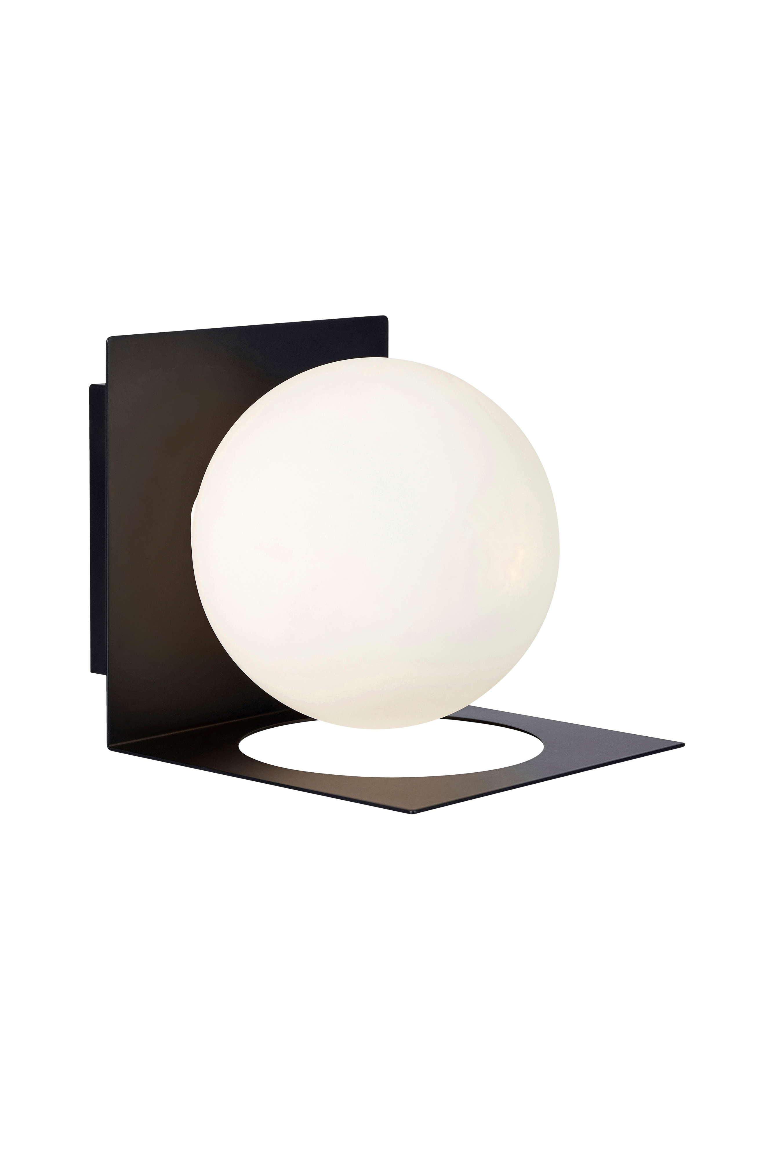 Kylpyhuoneeseen hyväksytty seinävalaisin. Valkoinen huurrelasikupu mustalla metallialustalla. Kiinteään asennukseen. Enintään 1x18 W. G9-lampunkanta. Valonlähde ei sisälly toimitukseen. Leveys ja korkeus 14 cm.