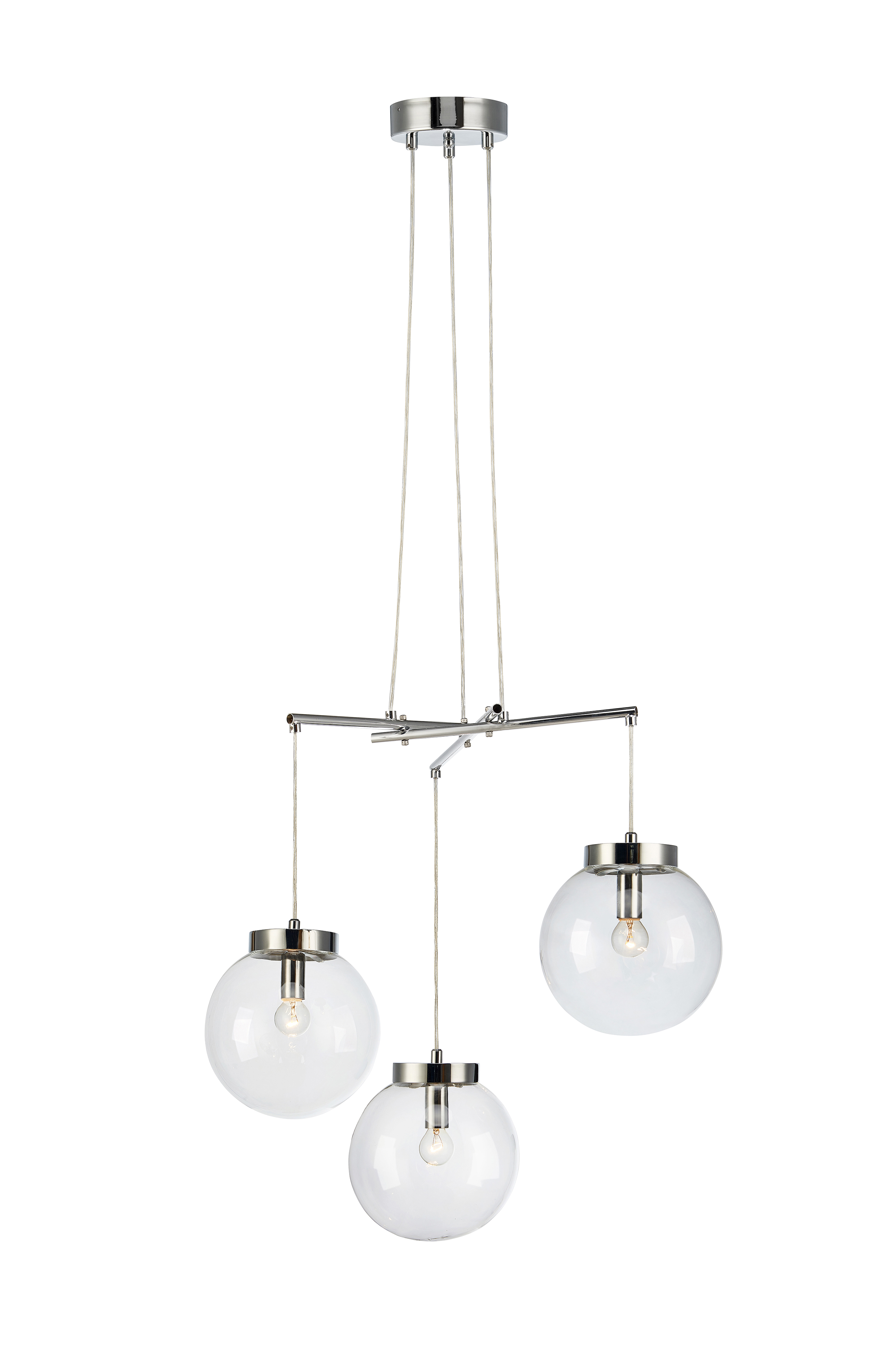 Markslöjd Sicily -kattovalaisin. Krominväriset detaljit ja kirkkaat lasikuvut. Eripituinen johto lasikuvuissa. Maadoitettu kattopistoke. Pieni lampunkanta E14. Enintään 40 W:n hehkulamppu tai vastaava halogeeni-, energiansäästö- tai LED-lamppu. Lamppu ei mukana.
