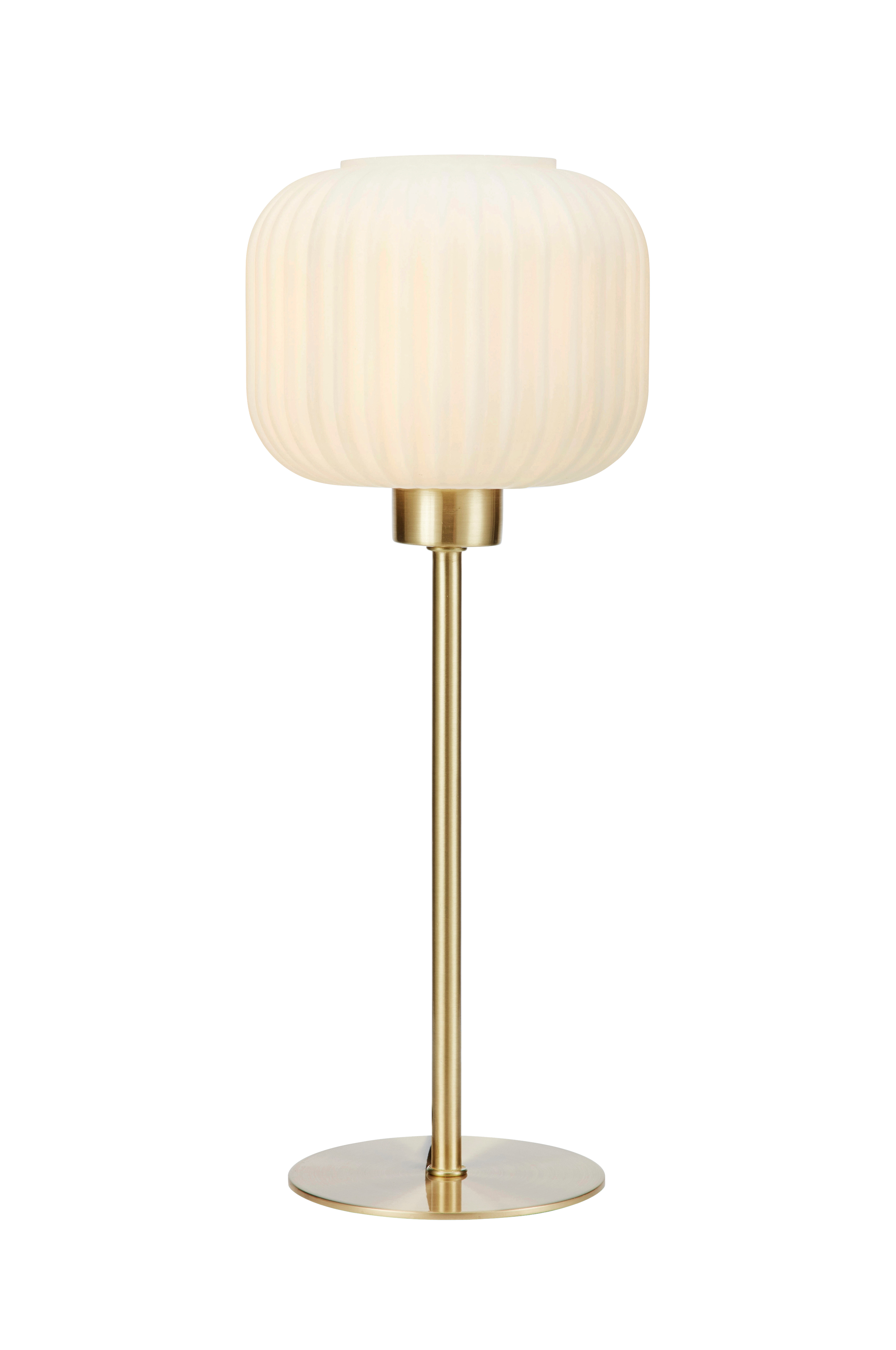 Pöytävalaisin, jossa tyylikäs lasivarjostin ja metallijalka. Valaisin henkii miellyttävää, huoliteltua eleganssia. 2 m:n johto, jossa virtakytkin ja seinäpistoke. 1 lampunpidike, E14-lampunkanta. Käytä enintään 40 W:n hehkulamppua tai vastaavaa LED-lamppua. Valonlähde ei sisälly toimitukseen.