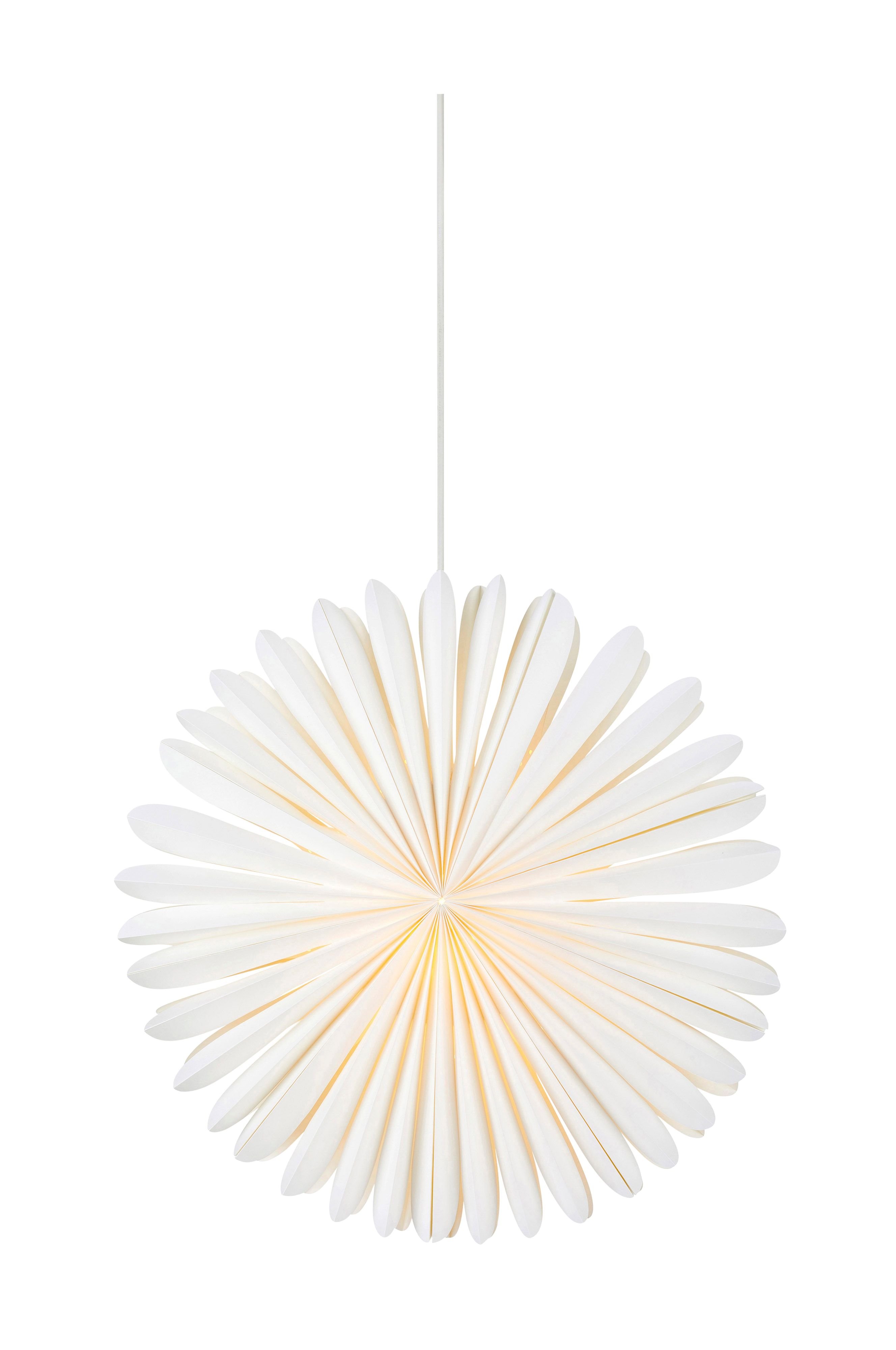 Riippuva paperitähti, jonka muoto vie ajatukset aurinkoon. Ihanan lämmin valo luo täydellisen joulutunnelman. Halkaisija 44 cm. Paperitähti toimitetaan ilman lisätarvikkeita. Ripustamiseen tarvitaan ripustussarja, tai vaihtoehtoisesti lampunjalka. Pieni lampunkanta (E14). Enintään 25 W:n lamppu tai vastaava LED-lamppu, ei mukana.