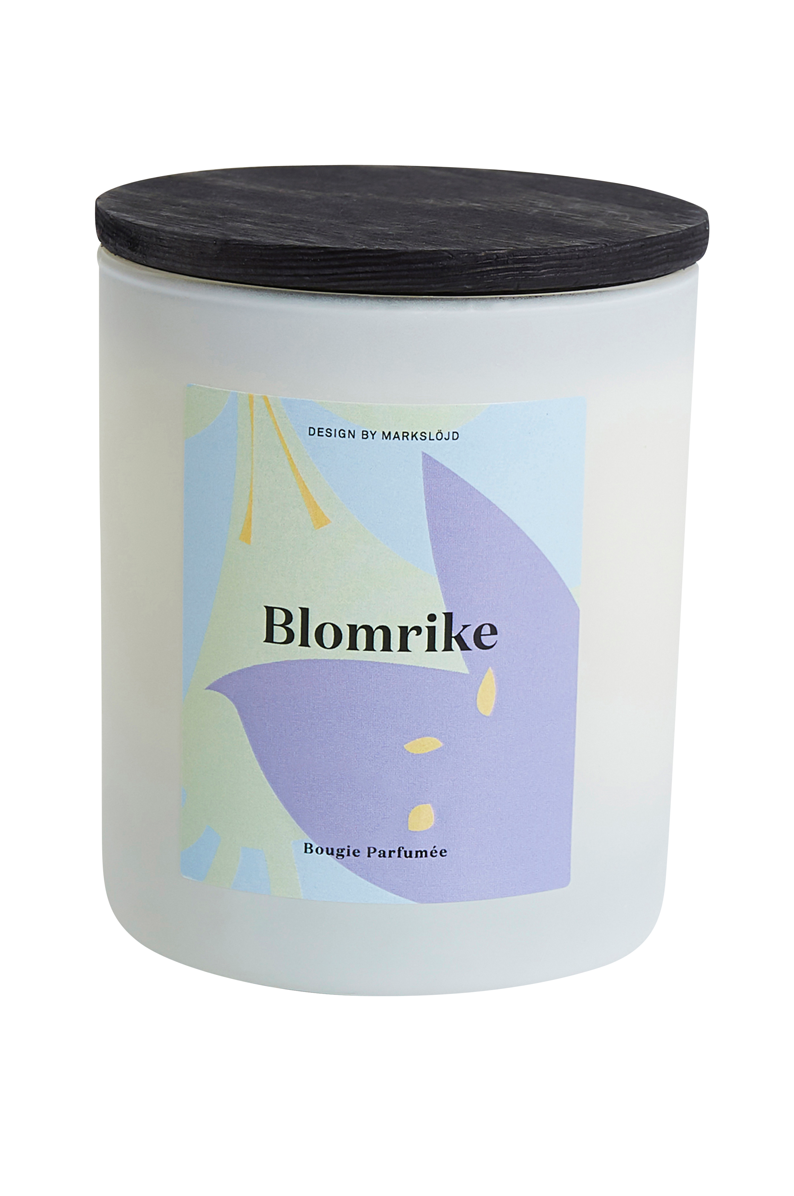 Tuoksukynttilä soijavahaa. Tuoksu: "Tuoksu luo modernin, viileän ja voimakkaan tunteen, jossa kukkien itseriittoisuus ohjaa selkeyteen. Kaikki mahdollisuudet ovat saavutettavissa. Tämä on Blomriken tuoksu." Valmistettu Espanjassa. Paino 230 g. Paloaika 50 tuntia.