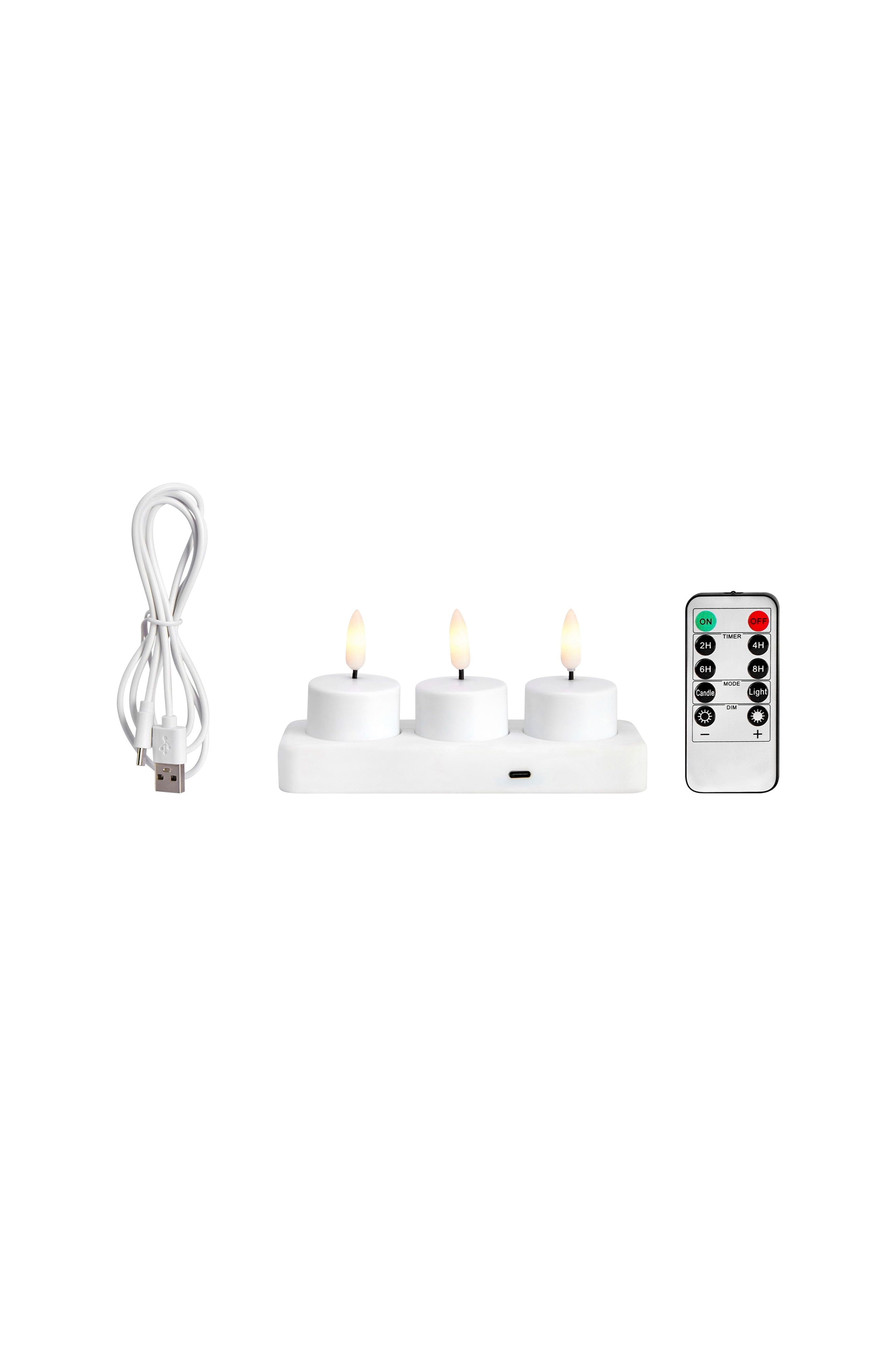 Kauko-ohjattavat led tea -valokynttilät 3 kpl:n pakkauksessa markslöjdiltä. Ladattavat muoviset tea valot. 2,4,6 ja 8h ajastintoiminto. Säädettävä valoefekti, vakio tai liekki. Jatkuva valo 4 himmennettävällä portaalla. Mukana 1m usb-c-kaapeli. Kytkin jokaisen valon alla.