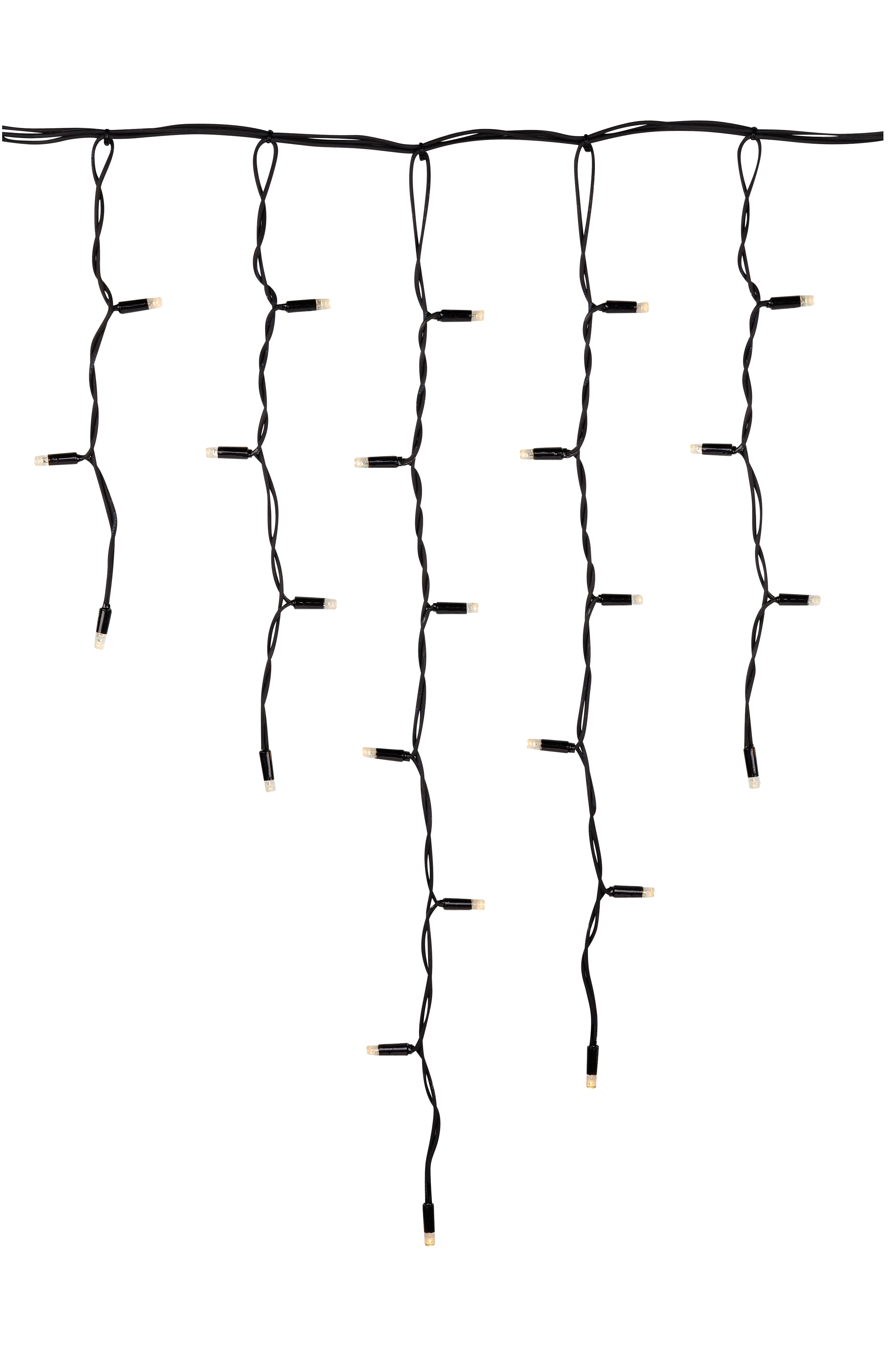 Chrissline Original -jääpuikkovalosarja, jossa eripituisia riippuvia valoköynnöksiä. 100 LED-valonähdettä, kokonaisteho 9,2 W. 2 metrin kumijohto, pisimmän riippuvan valoköynnöksen pituus 60 cm. Valosarja sopii erinomaisesti räystään alle, julkisivulle tai puunoksalle. Voidaan yhdistää muihin Chrissline-järjestelmän valosarjoihin. Yhteensä enintään 100 metriä tai 2500 valonlähdettä. Täydennetään aloituskaapelilla, tuotenumero 704812.