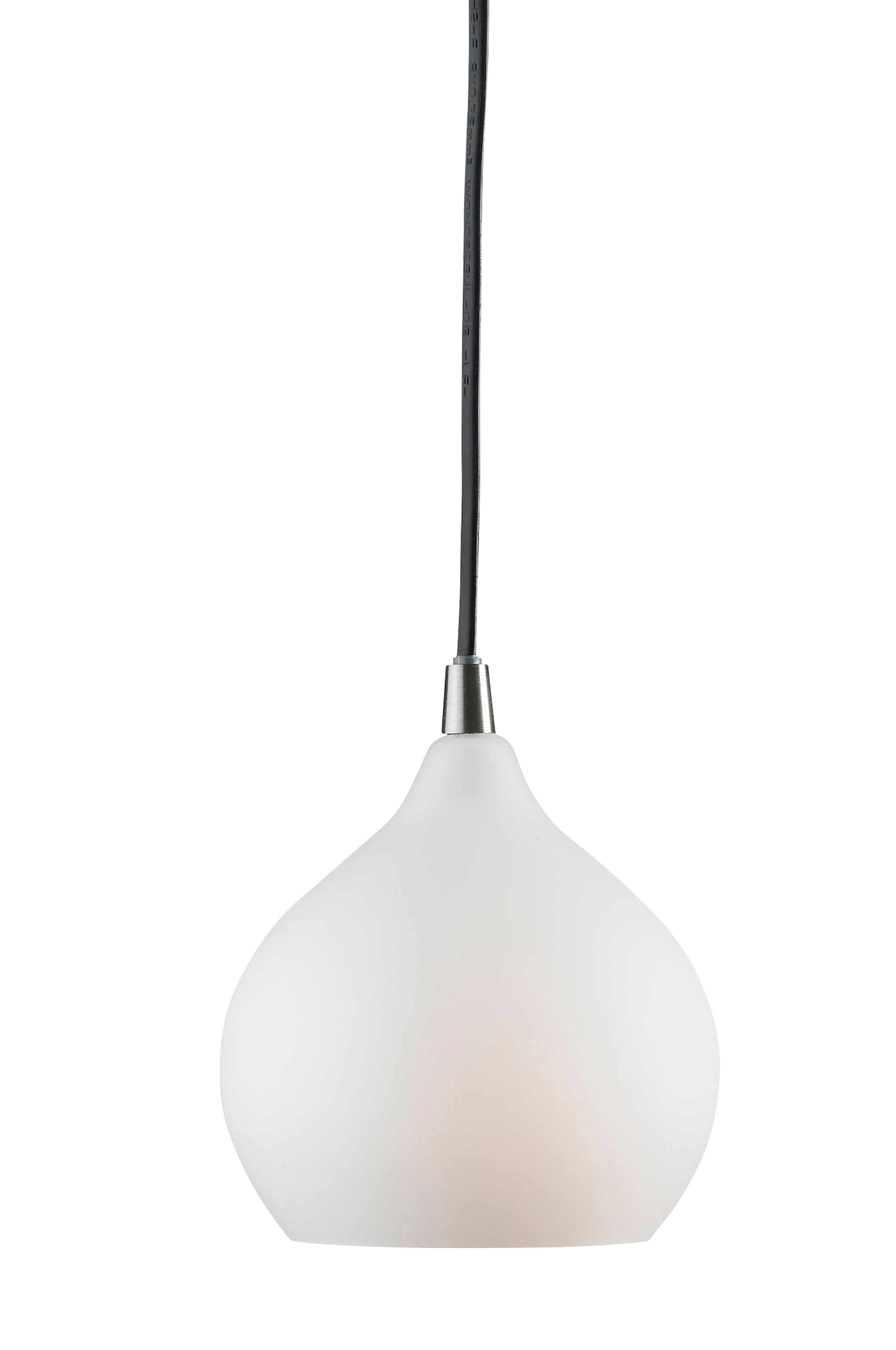 Halkaisija: 12 cm. Korkeus: 14 cm. Paino: 0,4 kg. Väri: teräs. Varjostimen väri: mattavalkoinen. Johto: mustaa kumia. Johdon pituus: 3,5 m. Lamppujen lukumäärä: 1. Enimmäisteho: 40 W. Sokkeli: E14.Ei sisällä kattopistoketta perustuen uuteen EU-direktiiviin. Tilaa erikseen.