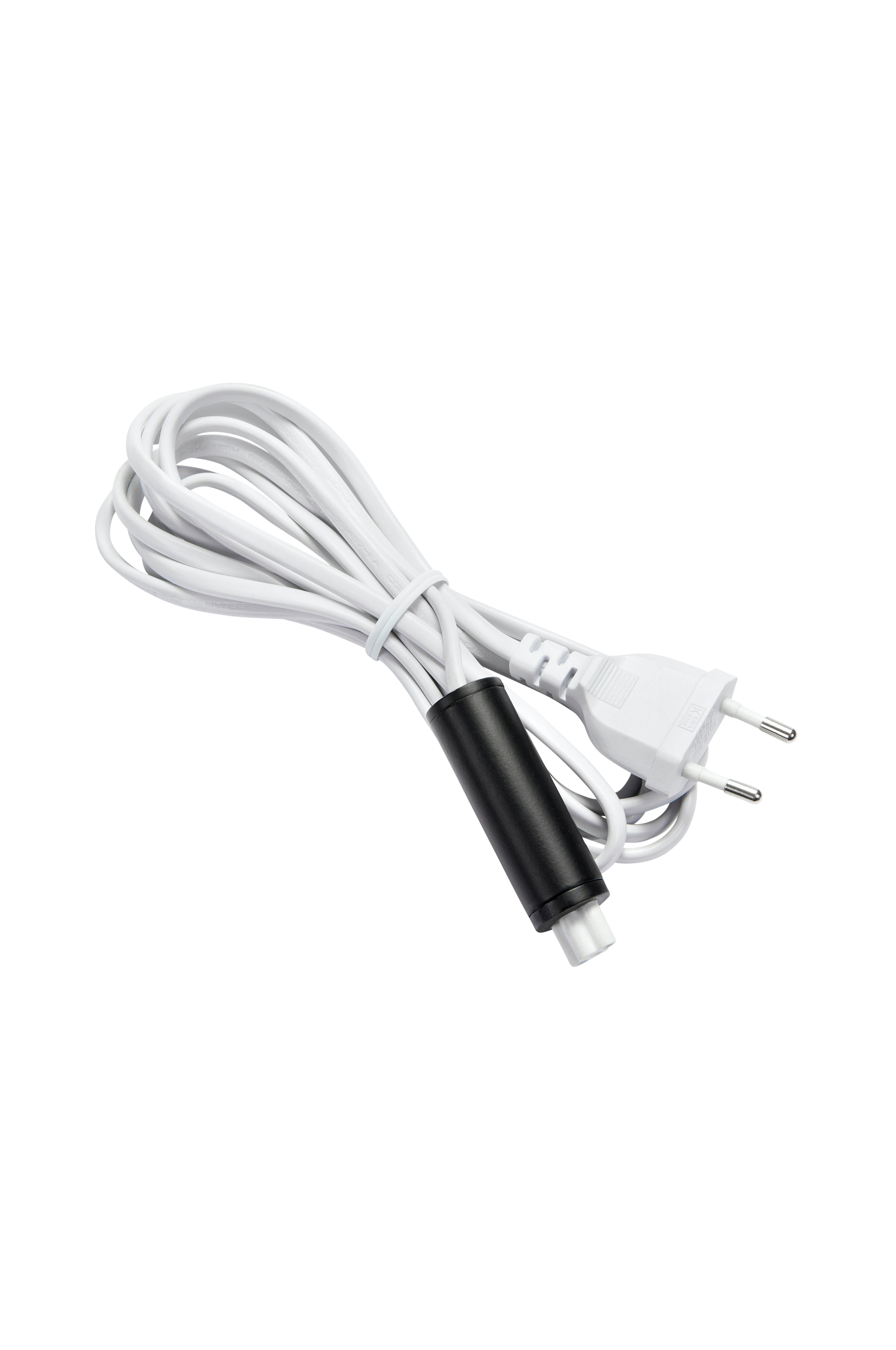 Metallinen Expand-virtajohto, jossa seinäpistoke ja kytkin. 3,5 m:n johto, jossa virtakytkin.