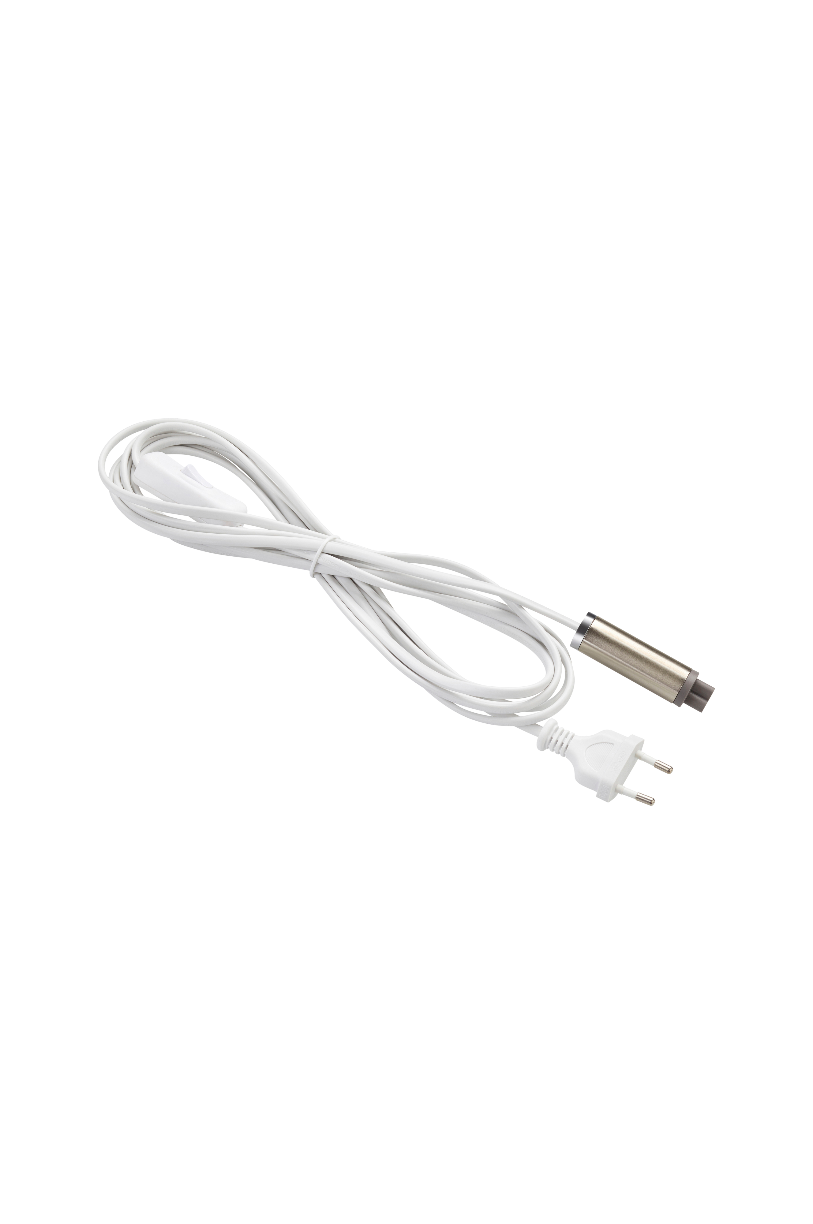 Metallinen Expand-virtajohto, jossa seinäpistoke ja kytkin. 3,5 m:n johto, jossa virtakytkin.