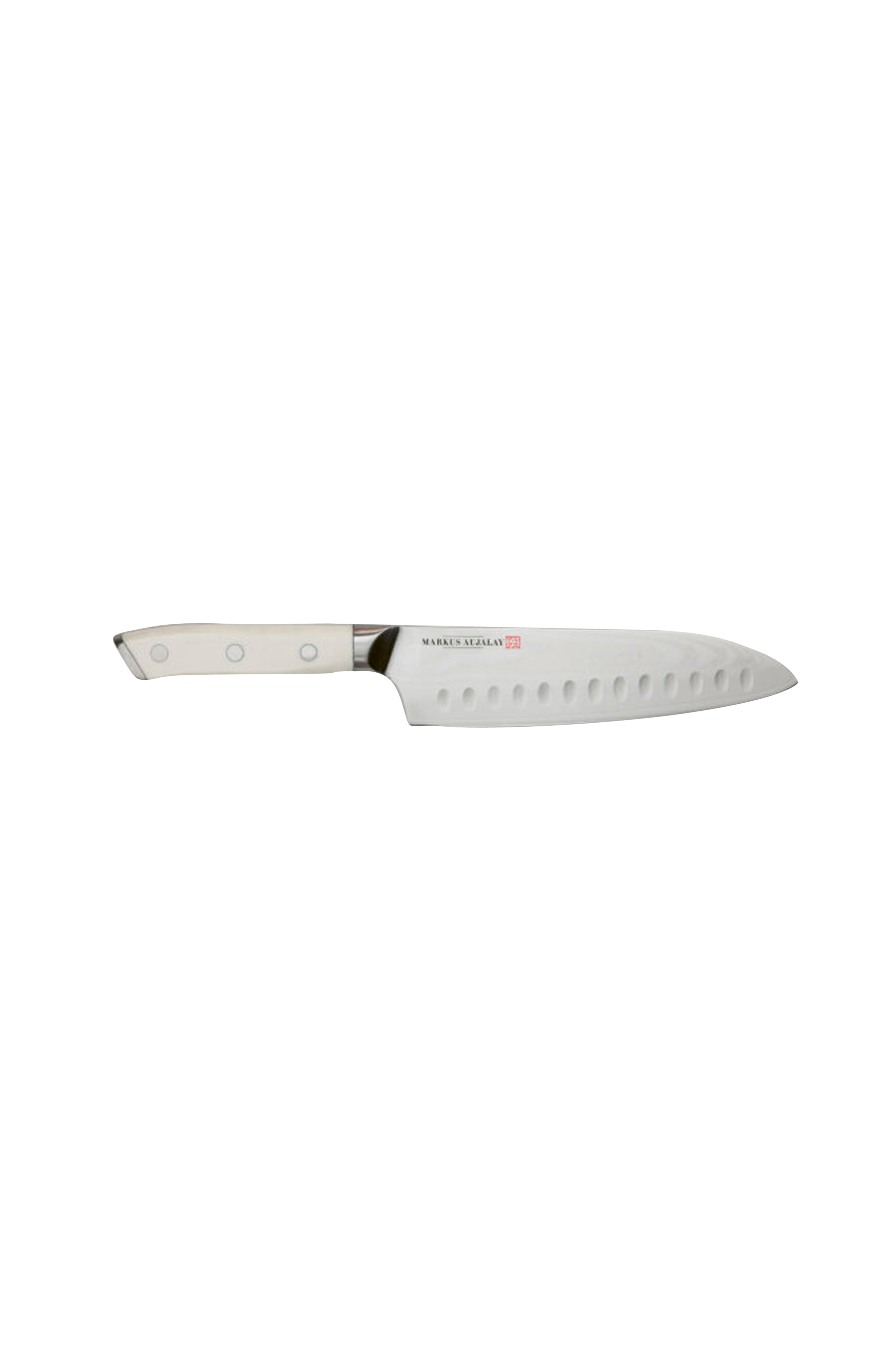 Ylellinen kokkiveitsi, jonka terä on valmistettu 67-kerroksisesta teräksestä, joka on taottu ja kiillotettu ainutlaatuisen veitsen luomiseksi. Ydin on kovaa terästä ja muut kerrokset pehmeämpää, ruosteenkestävää terästä, joka on erittäin terävää. Veitsen valkoinen kahva on kestävä ja suunniteltu antamaan parhaan mahdollisen otteen.