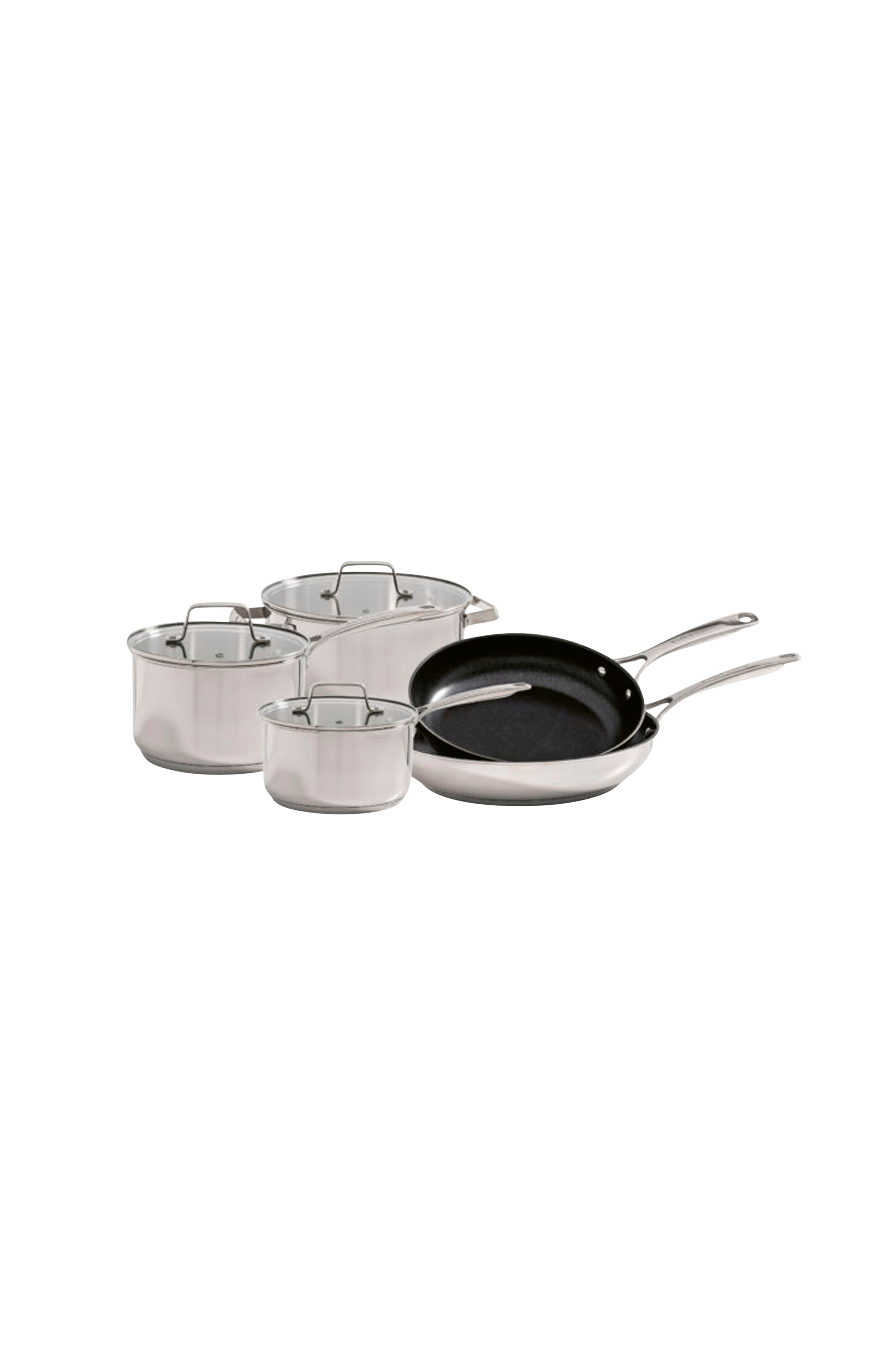 Laadukas kattila- ja paistinpannusetti ruostumatonta 18/10-terästä.