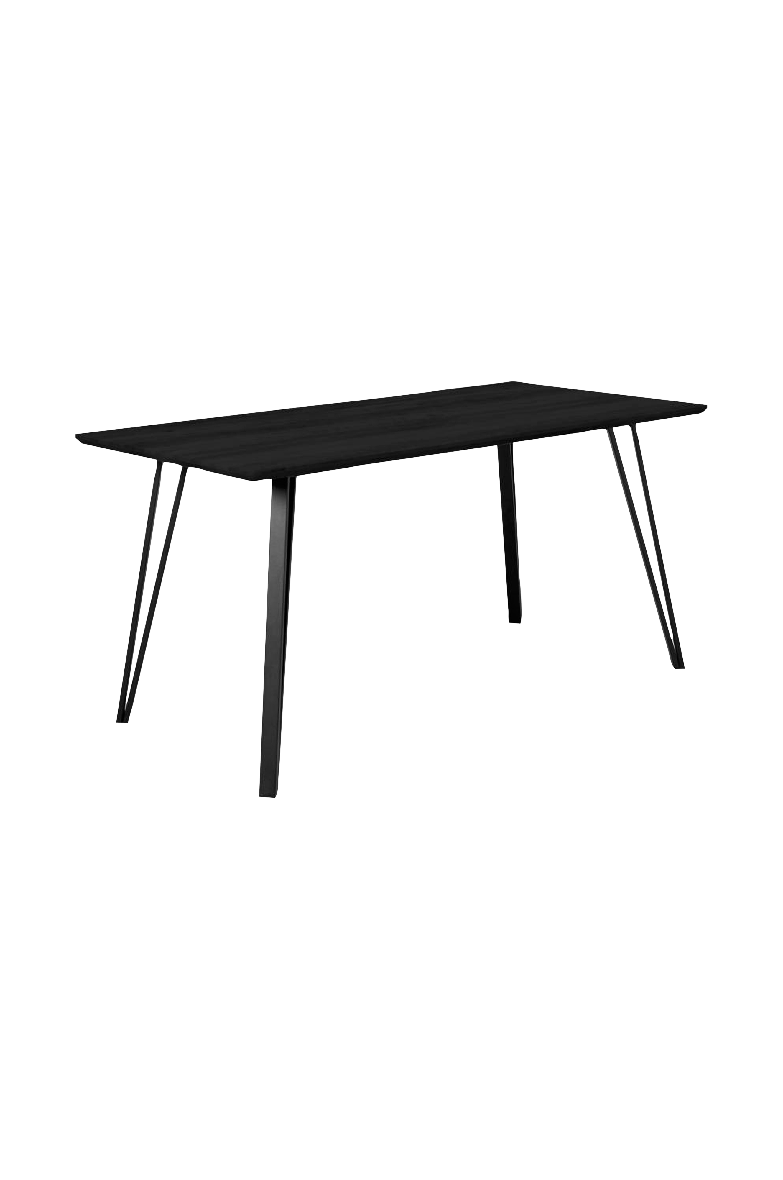 Tyylikäs musta ruokapöytä, jossa helppohoitoinen pöytälevy. MDF-levyä ja melamiinia.