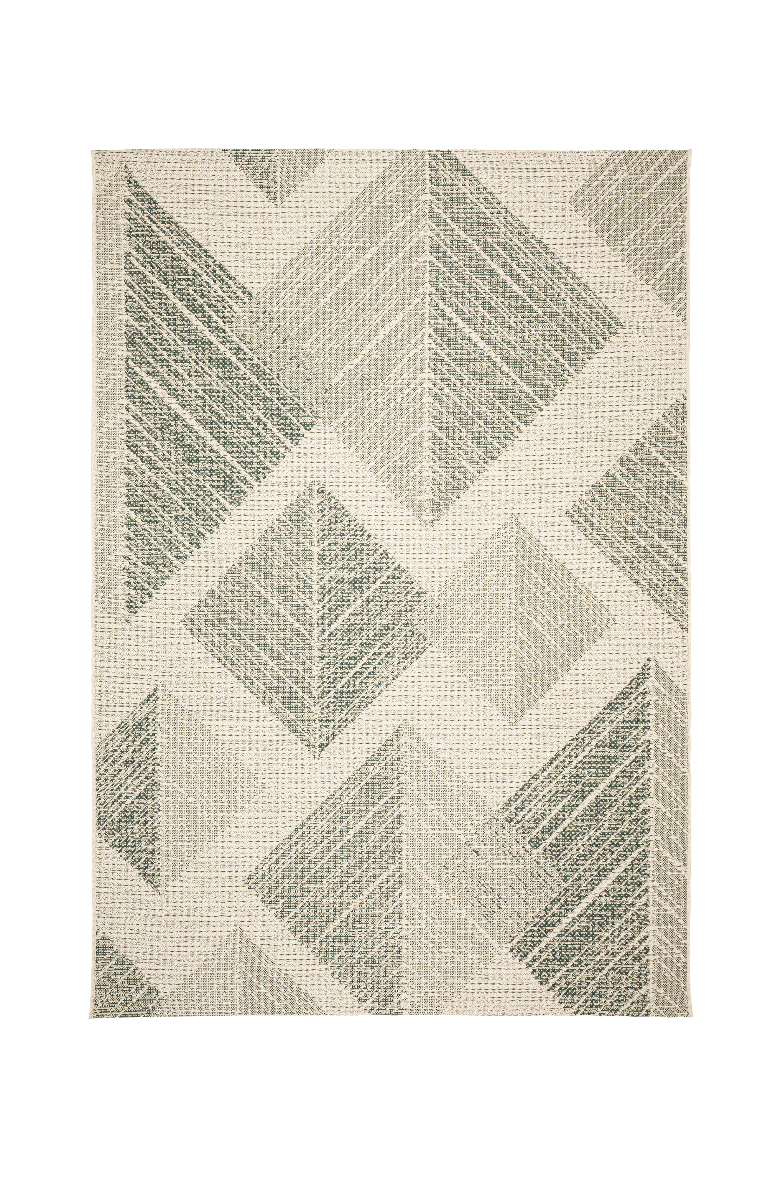 Tasokudottu matto, jossa trendikäs kuvio. Sopii sekä sisälle että ulkoterassille. Kestää aurinkoa, tuulta ja sadetta.