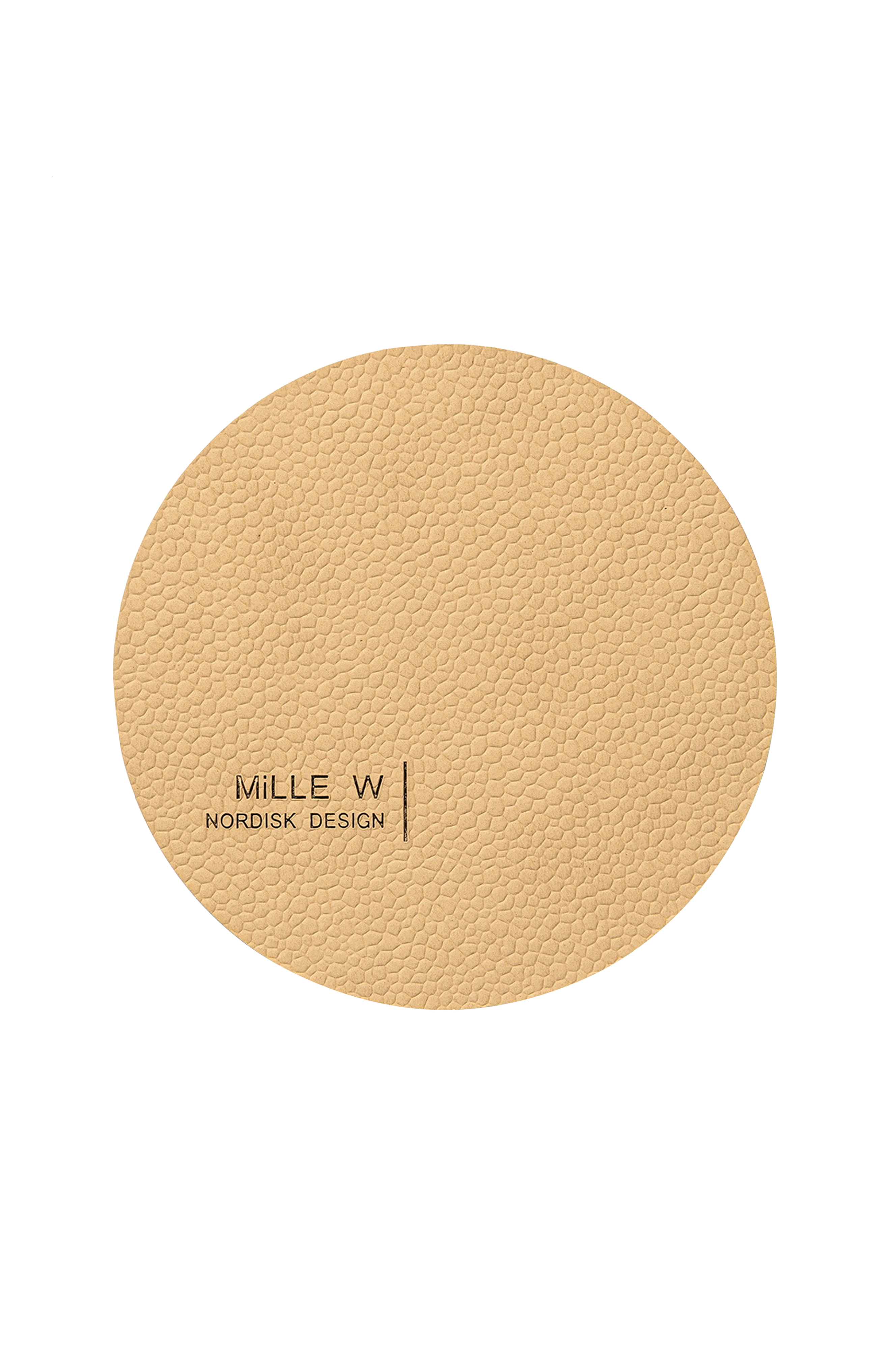 Mille W Nordisk DESIGNin aluslautaset on valmistettu kierrätetystä nahasta. Kierrätetyn nahan ansiosta saat nahan tuntuman ja tuoksun, ja luonnonkumin sekoitus tekee niistä vettä hylkiviä ja erittäin kulutuskestäviä. Tämän ansiosta ne on helppo puhdistaa pesuaineella ja pehmeällä liinalla, ja samalla niistä tulee kaunis koristeellinen yksityiskohta pöydälle.