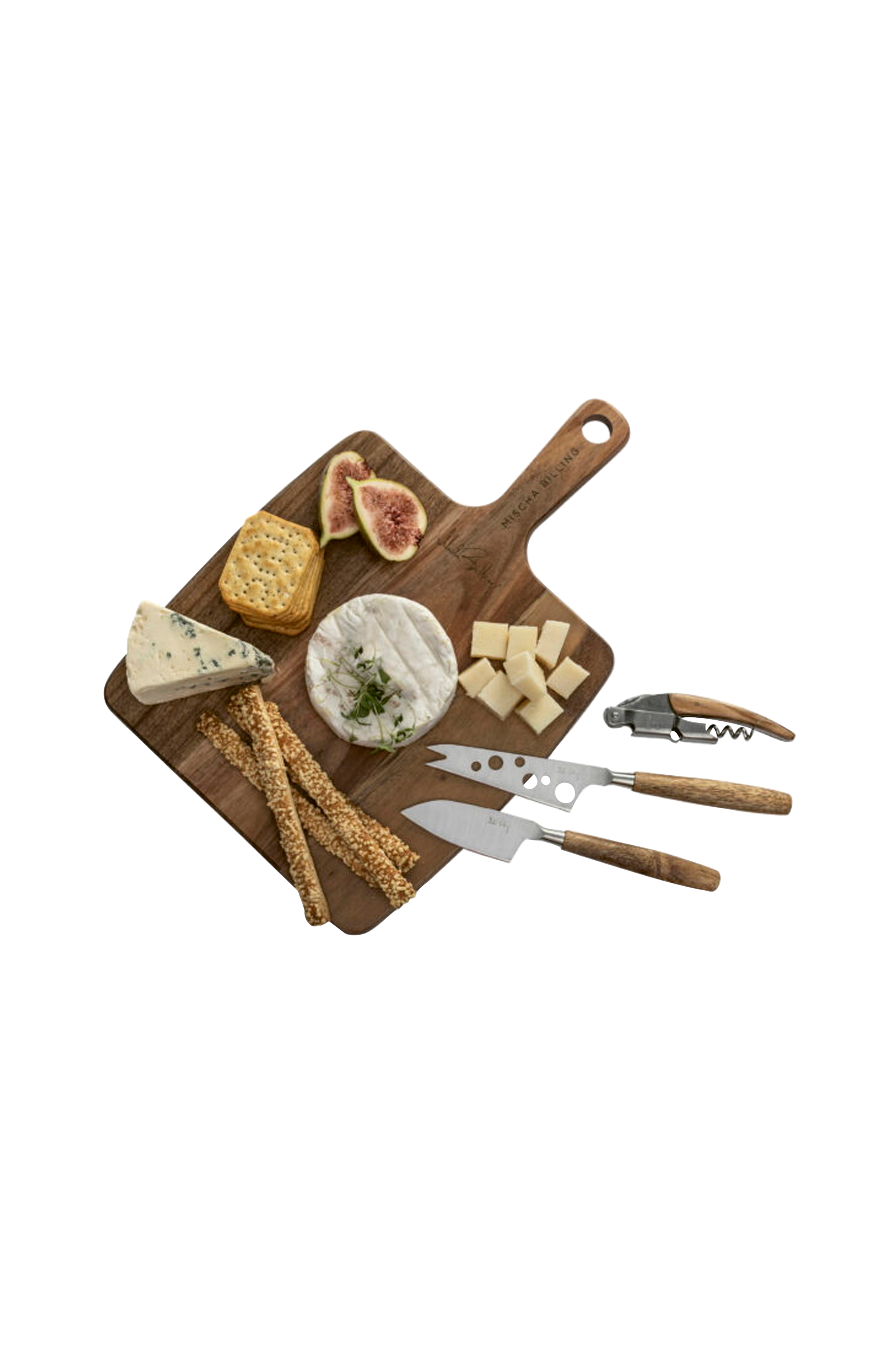 Mischan iso kahvallinen akasiapuusta valmistettu juustotarjotin kahden ottimen ja viinipullonavaajan kanssa on erittäin arvostettu lahja. Ylellisessä ja modernissa viinipulloavaajassa on
