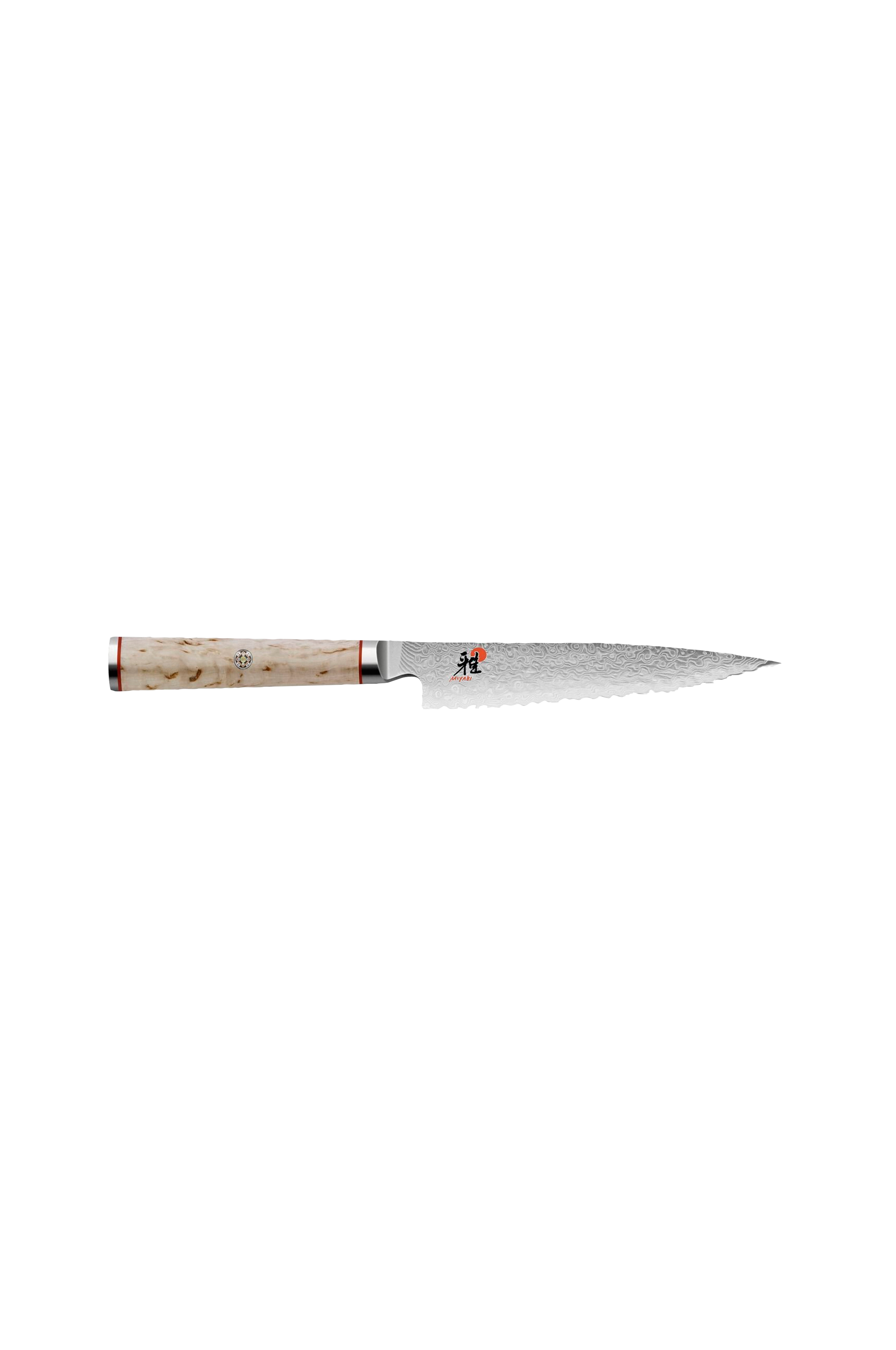 13 cm:n pituinen erittäin ohut ja tukeva veitsenterä sopii erinomaisesti hedelmien ja kasvisten pilkkomiseen, kuorimiseen tai puhdistamiseen. Veitsen suuri terävyys perustuu Honbazuke-hiontaan, jossa veitsen terä hiotaan molemmilta puolilta. Veitsessä on lisäksi tyypillinen japanilainen terän profiili, joka mahdollistaa symmetrisen leikkaamisen 19 asteen kulmassa. Veitsen terän ydin koostuu MicroCarbide-jauheteräksestä MC63. Sitä ympäröi 100 kerrosta kahata erilaista ruostumatonta terästä, jotta veitsen terään saadaan ainutlaatuinen Flower-Damast-kuvio. Kuvio tekee veitsestä ainutlaatuisen. Huomattava kovuustaso, noin 63 Rockwell, on saavutettu jääkarkaisemalla CRYODUR®-veitsenterä erikoisprosessissa -196 asteessa. D-mallinen tasapainotettu kädensija visakoivua. Jokaisen veitsen puunsyyt ja rakenne ovat yksilölliset.