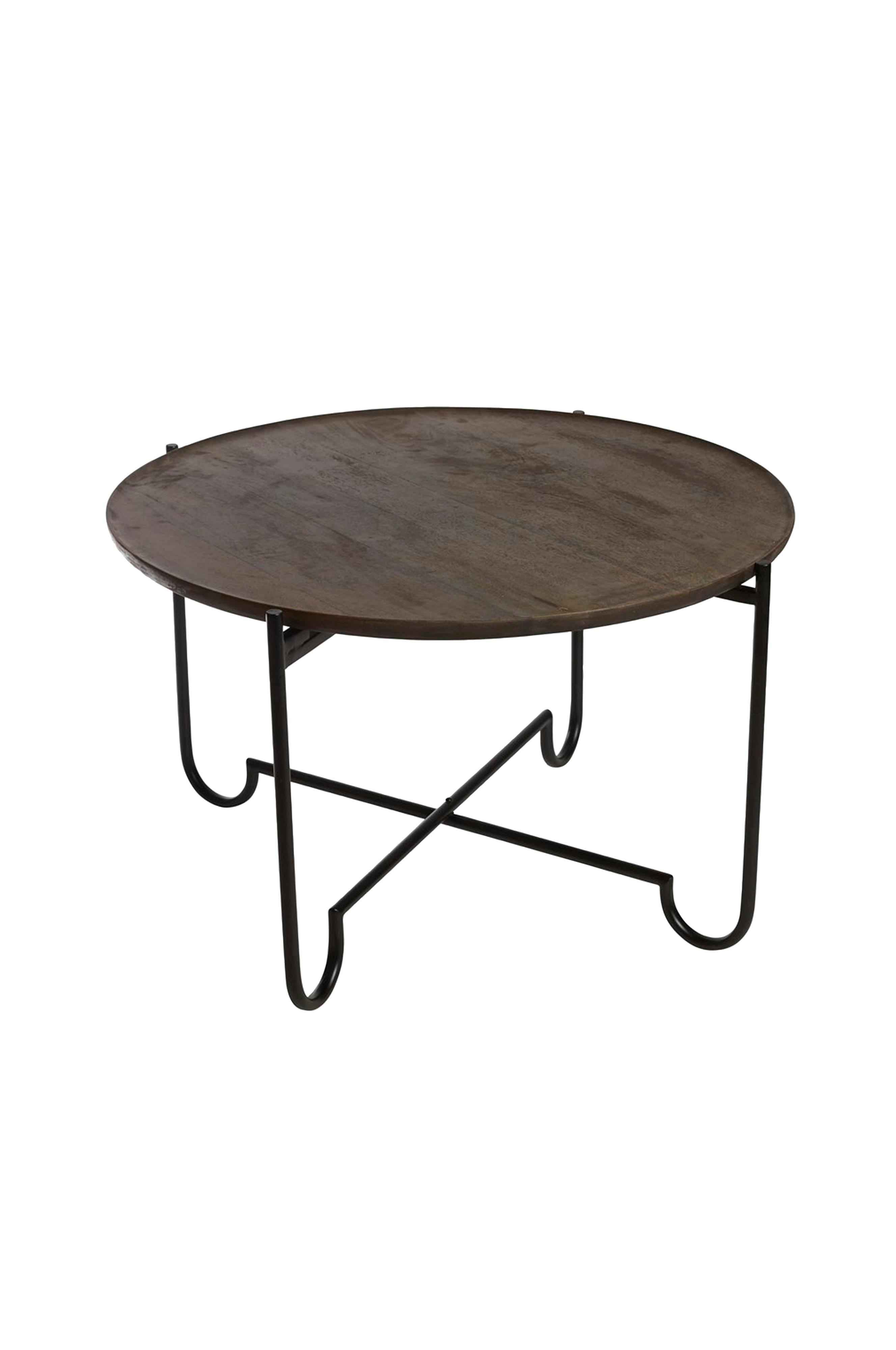 Pyöreä Hoxton-sohvapöytä, jossa irrotettava pöytälevy tyylikkään tummanruskeaa mangopuuta. Mustat metallijalat. Toimitetaan osina. Korkeus 46 cm, halkaisija 80 cm.