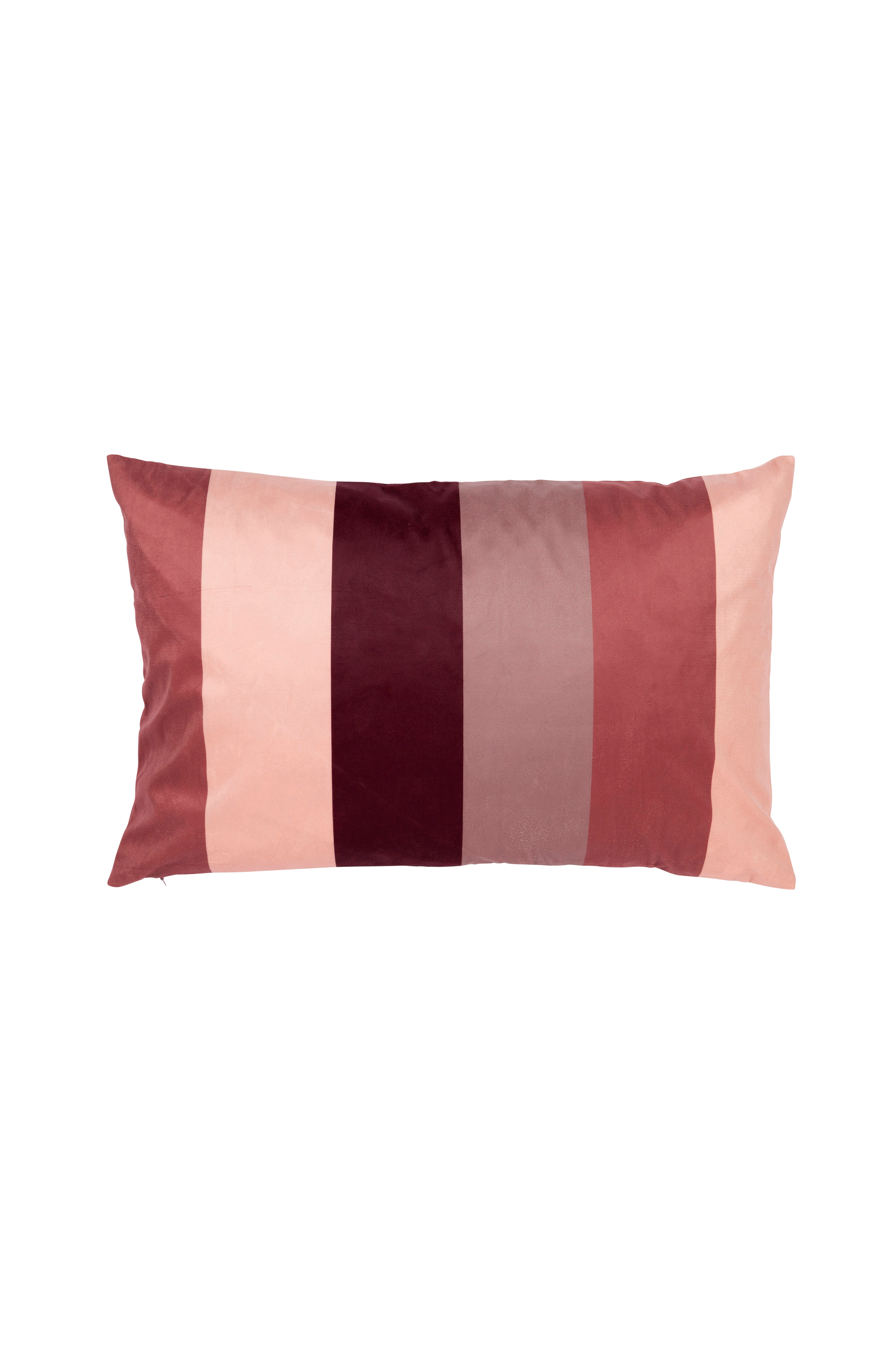 Raidallinen tyynynpäällinen samettia. Piilovetoketju alareunassa. Koko 40x60 cm. Käsinpesu