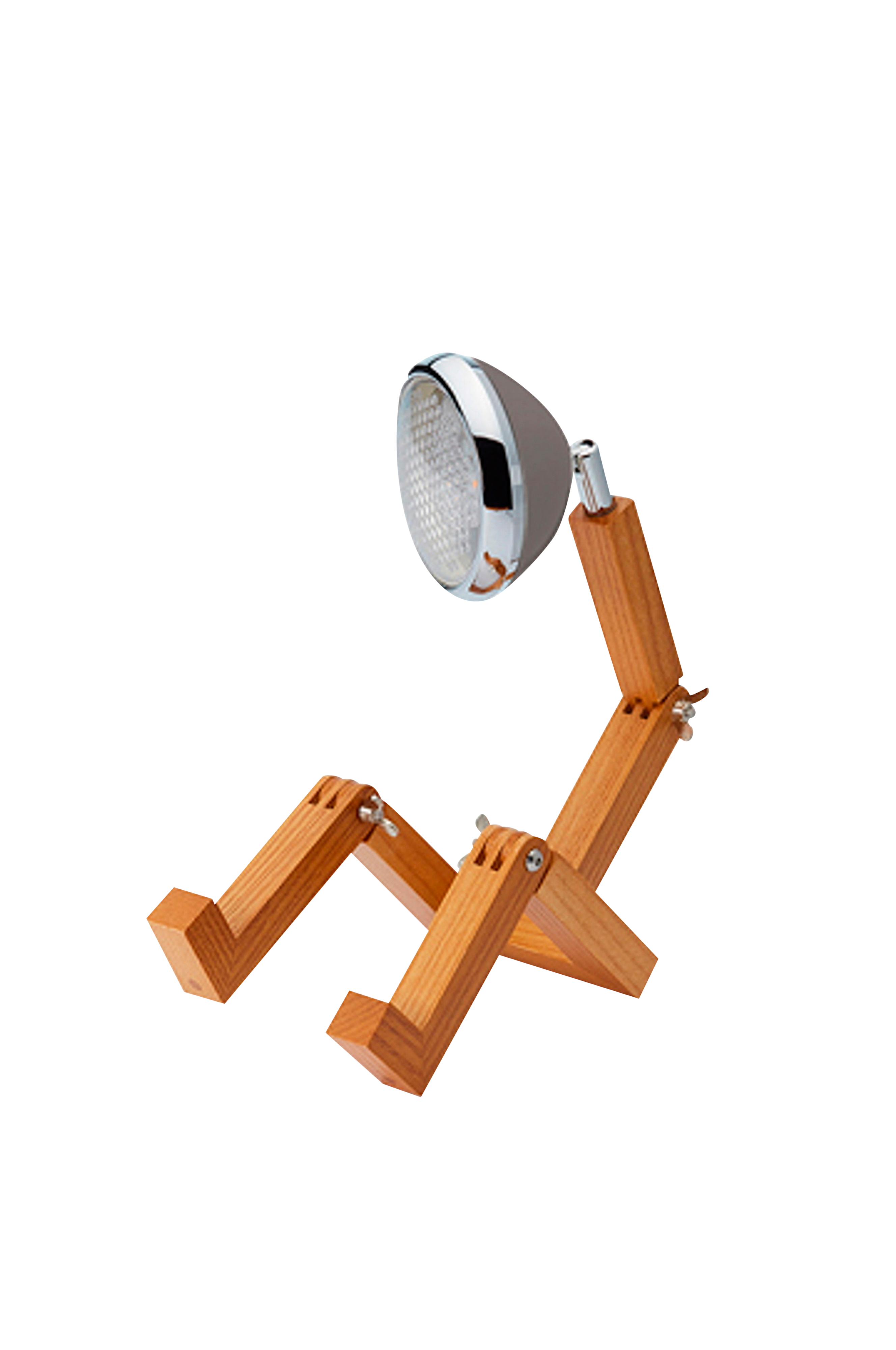 Klassikoksi muodostuneen Vespan ja 70-luvun lelujen innoittama pöytävalaisin. Käsintehty valaisin on kaunista saarnipuuta. LED-lamppu (g4 chip) valaisee tehokkaasti ja umpion lasikuplat luovat tunnelmaa. Mitat: leveys 16,4 cm, syvyys 9 cm, korkeus 11 cm. Toimitus sisältää 90 cm:n USB-puuvillajohdon. Valonlähde: custom g4 led (0,25 W). Materiaali: saarni/alumiini/metalli.