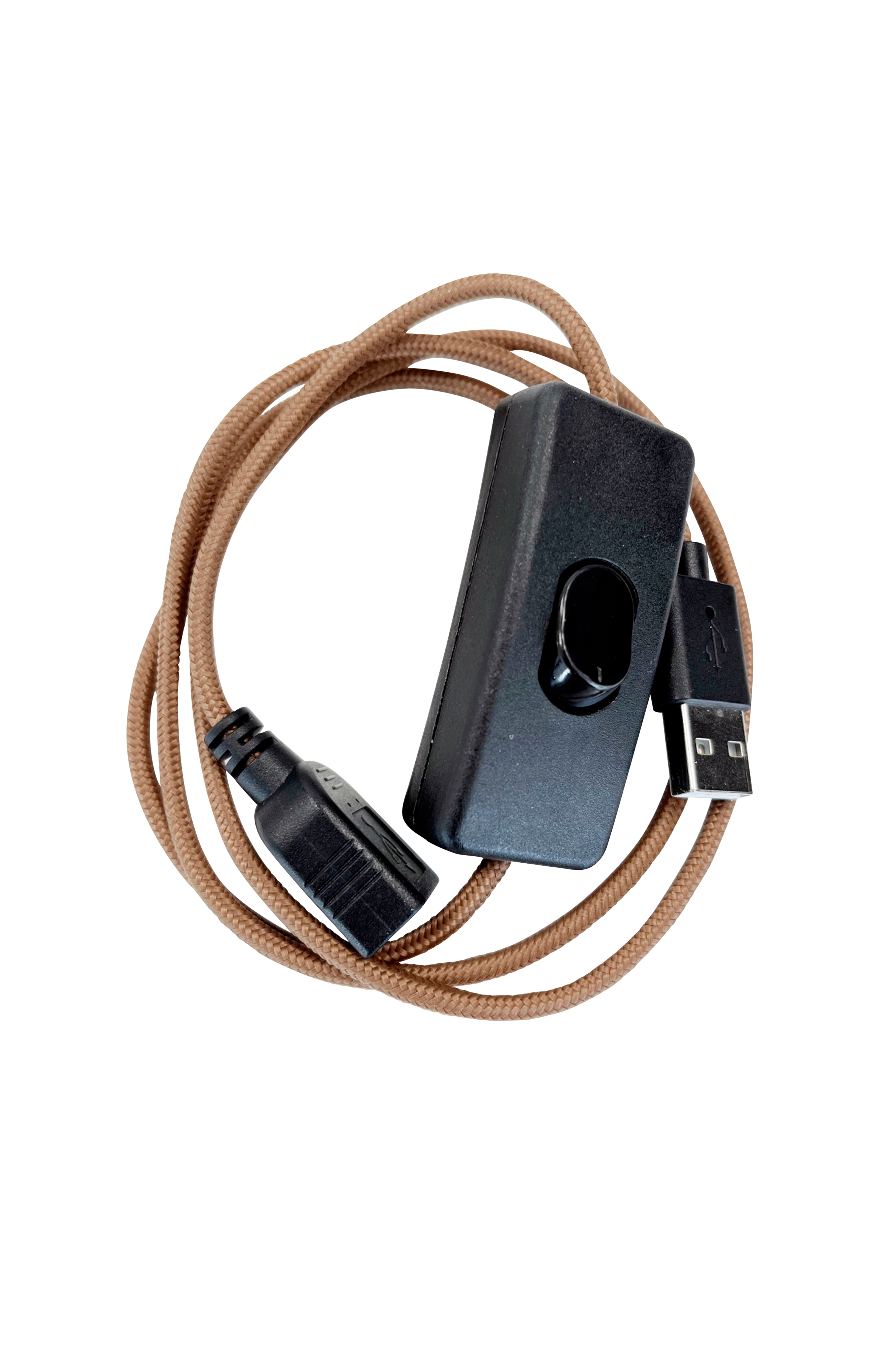 Virtakytkimellinen johto Mr. Wattson Mini -pöytävalaisimeen. USB-A. Pituus: 1,5 metriä. Materiaali: puuvilla/muovi