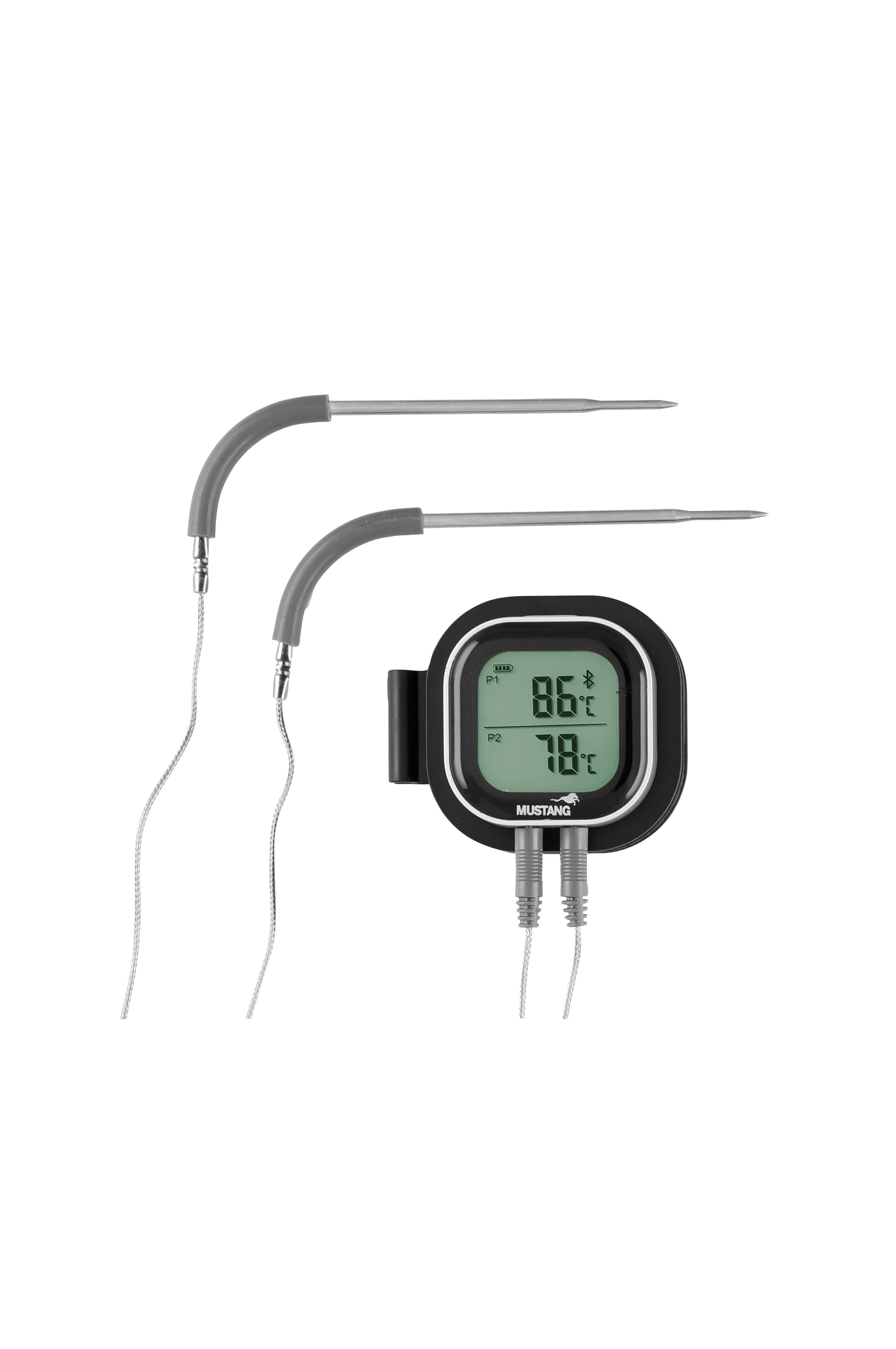 Mustangin digitaalinen Bluetooth-lämpömittari kommunikoi sovelluksen avulla älypuhelimesi kanssa, ja voit seurata ruoanlaittoa suoraan älypuhelimeltasi