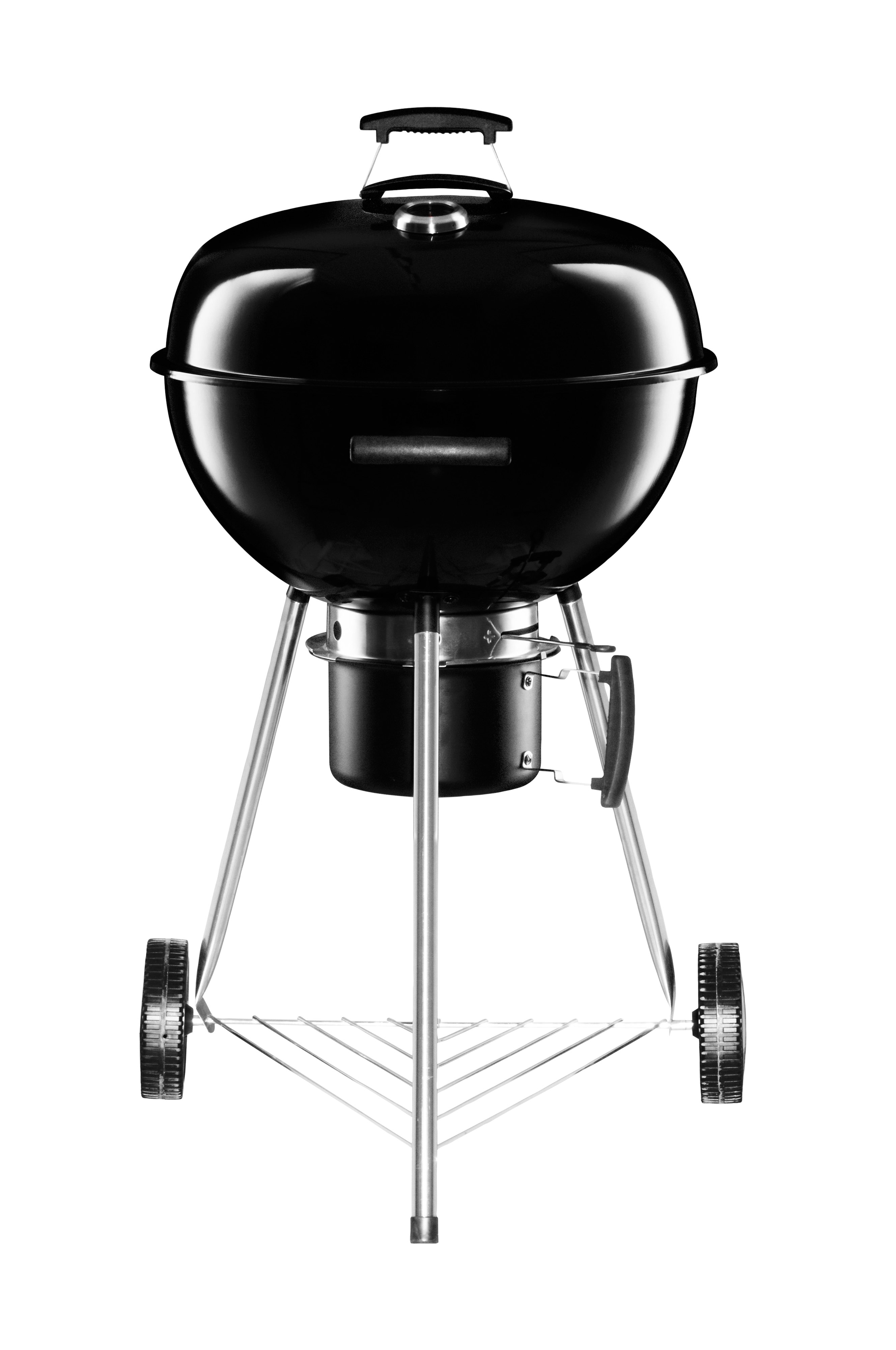 Grillin alla on irrotettava tuhka-astia sekä vipu, jolla säädetään ilman määrää. Kannessa lämpömittari sekä venttiili vedon säätöön.