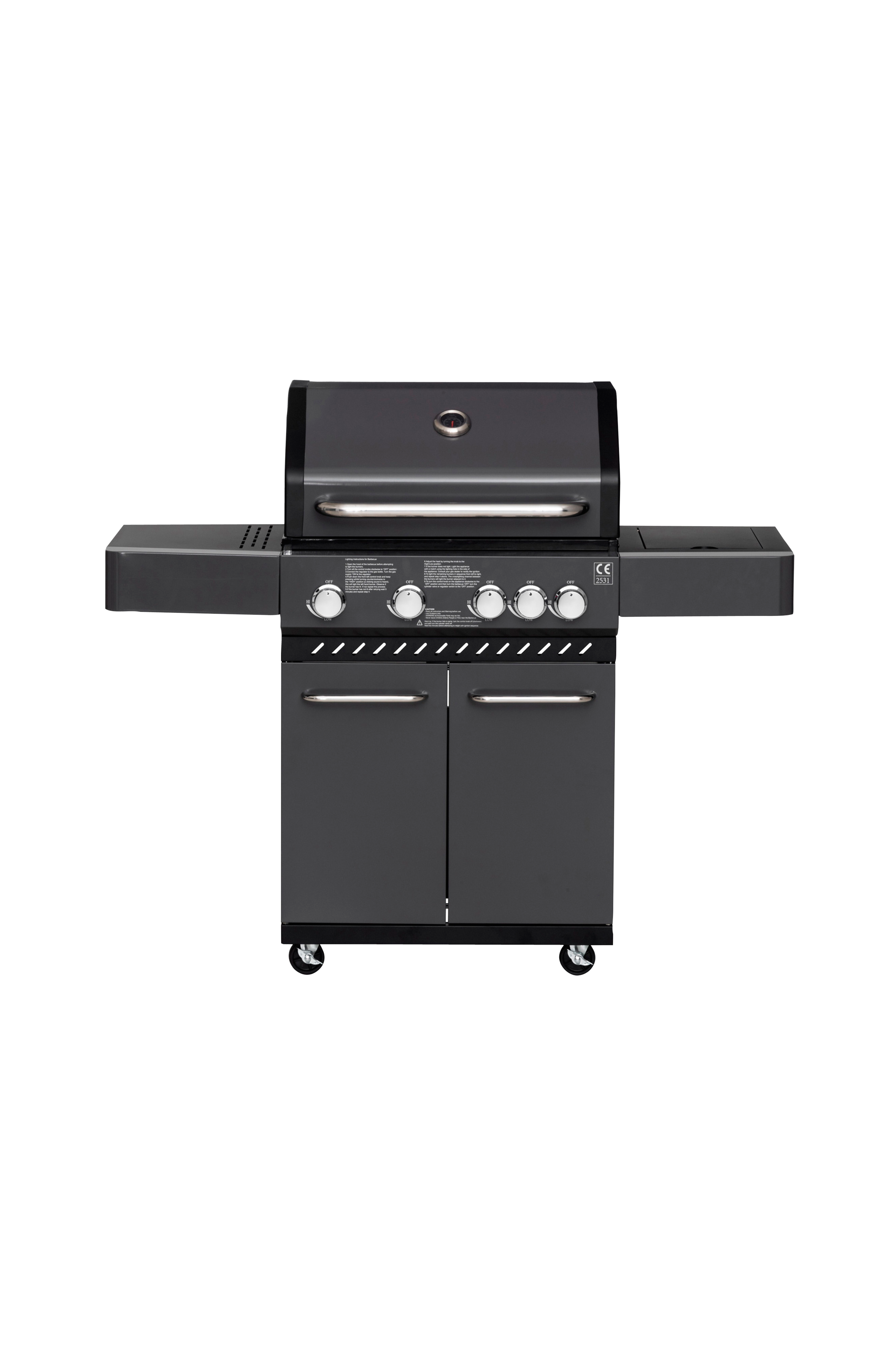 Grillissä on 4 ruostumattomasta teräksestä valmistettua pääpoltinta ja sivupoltin.