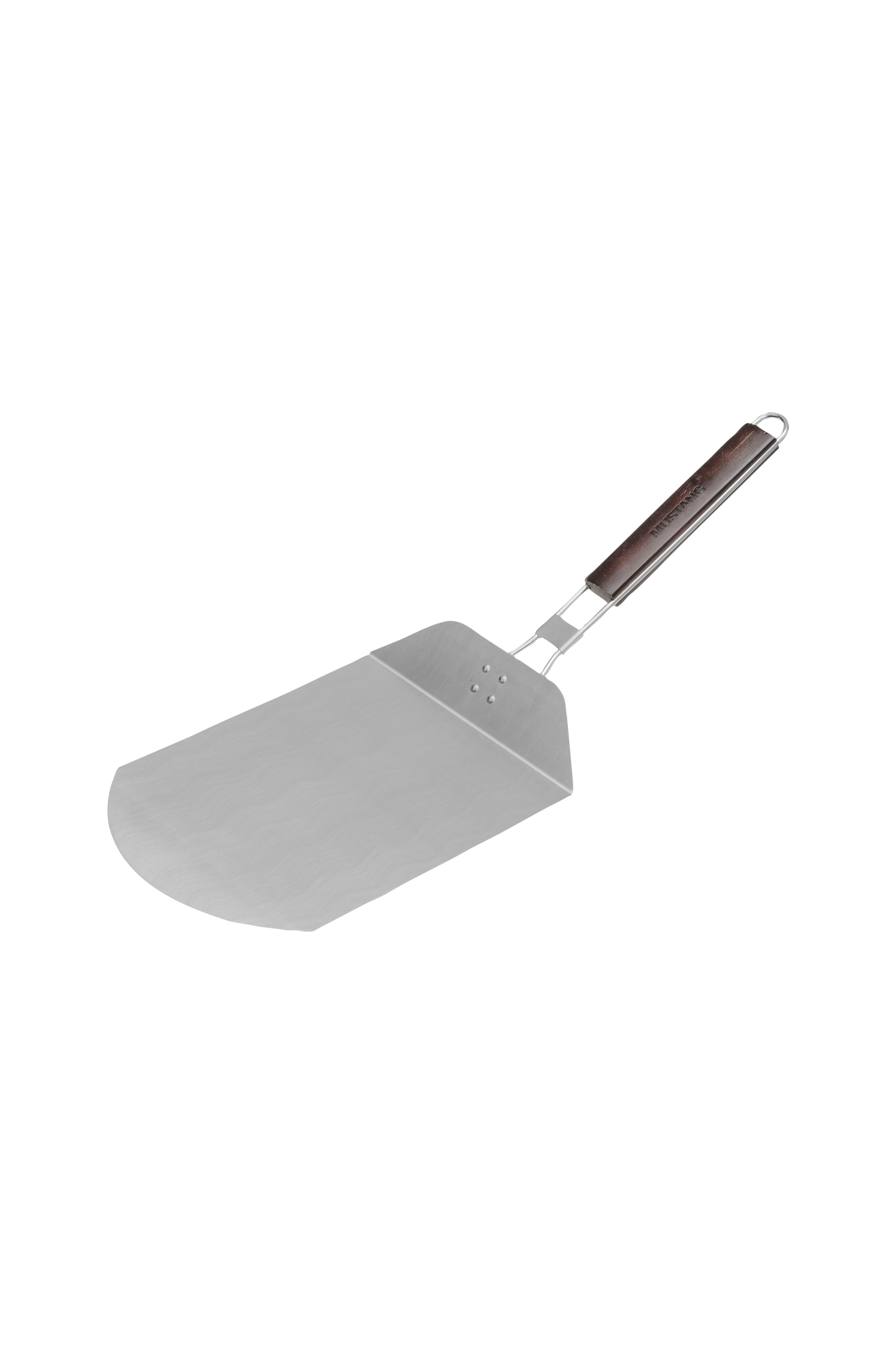 • Ruostumattomasta teräksestä valmistettu pizzankuori puukahvalla