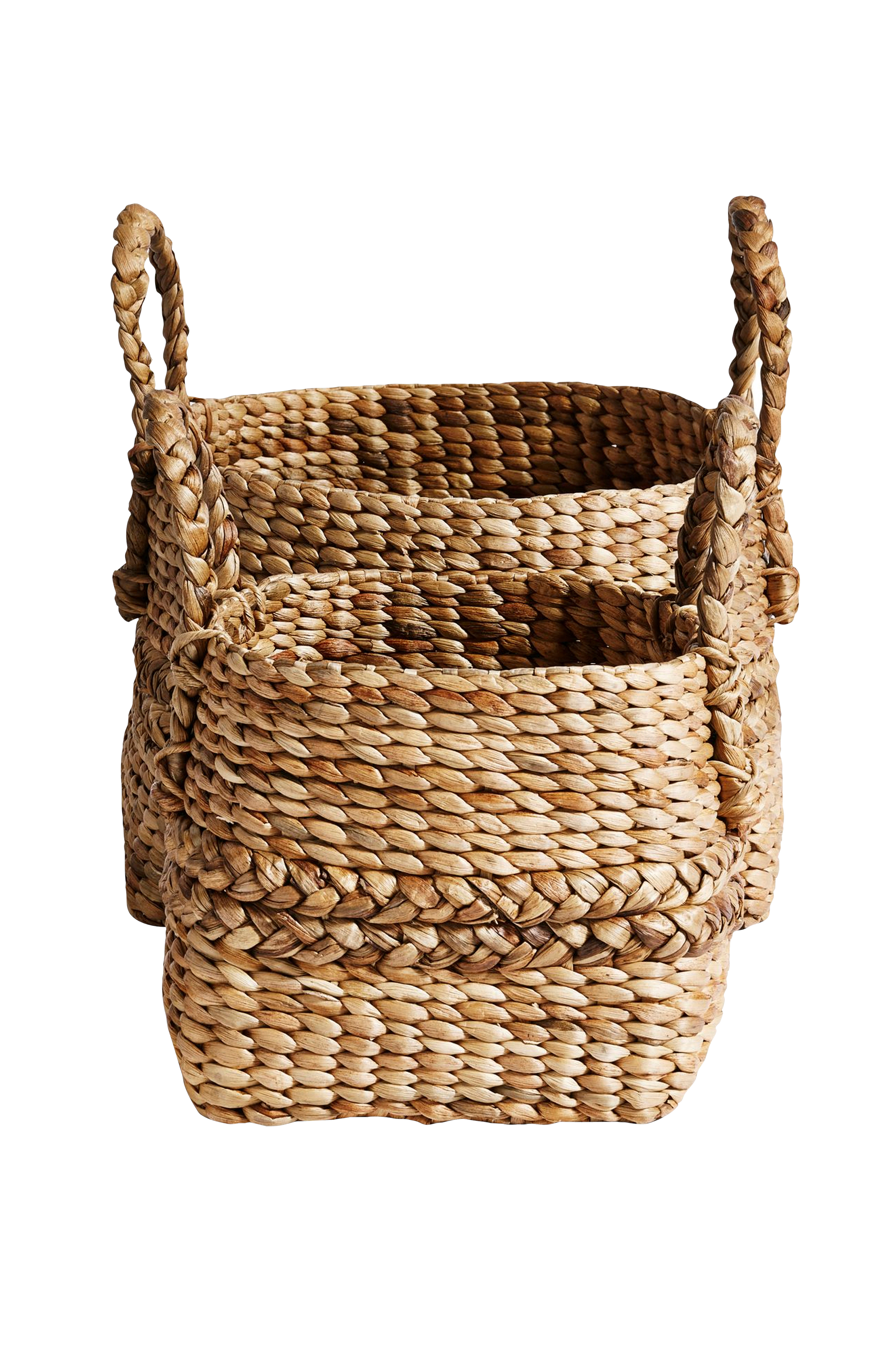 Handle-korisetti vesihyasinttia. Setissä on kaksi erikokoista koria. Korit sopivat säilytykseen tai pyykkikoreiksi. L: Leveys 46 cm, syvyys 46 cm ja korkeus 31 cm (ilman kahvaa). S: Leveys 32 cm, syvyys 32 cm ja korkeus 27 cm (ilman kahvaa).