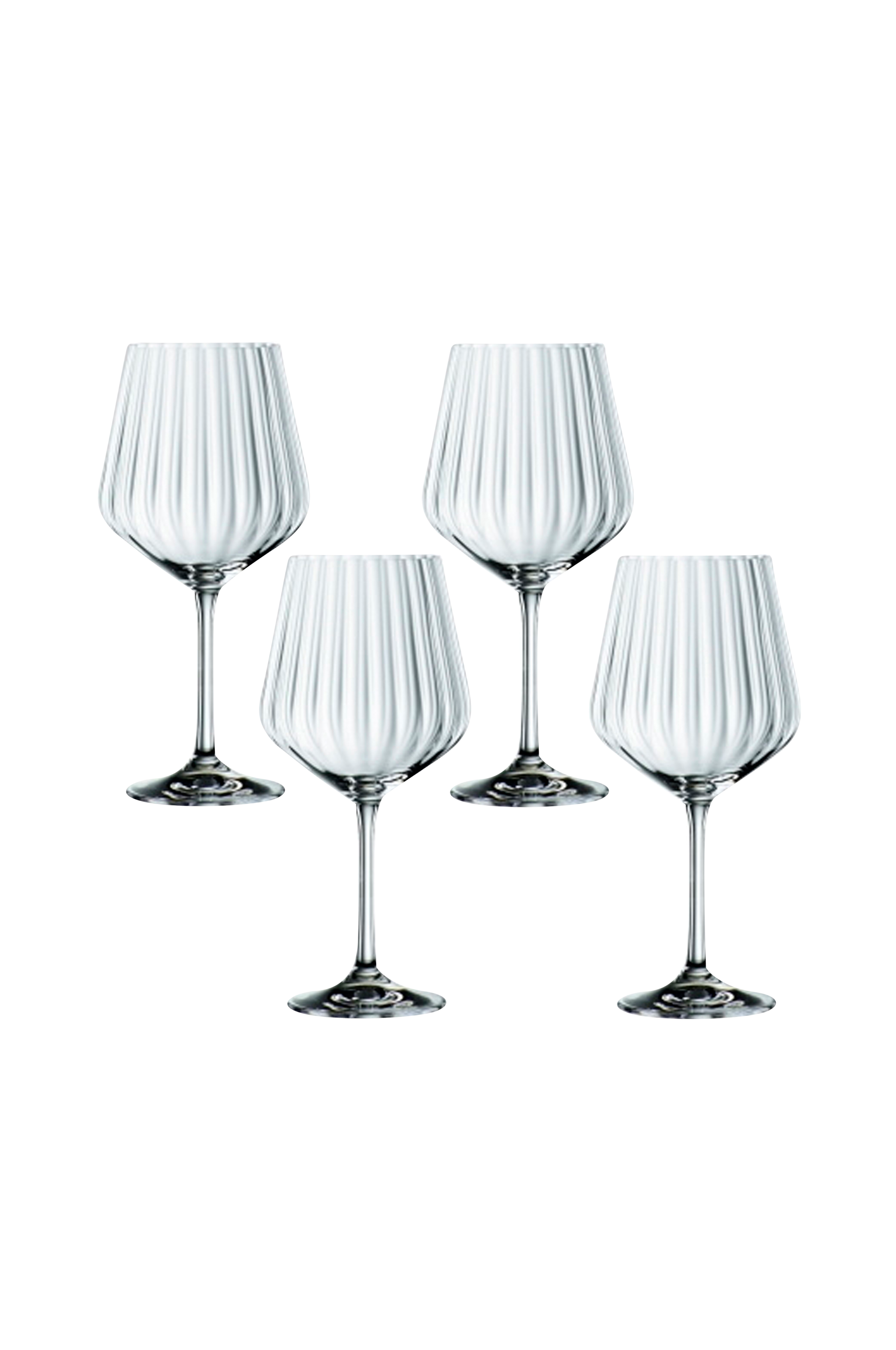 Nachtmannin 4 ylellistä kristallilasista valmistettua Gin & Tonic -lasia, 4 pilliä ja 1 puhdistusharja. Lasien vetoisuus on 64 cl, ja ne voidaan pestä astianpesukoneessa.