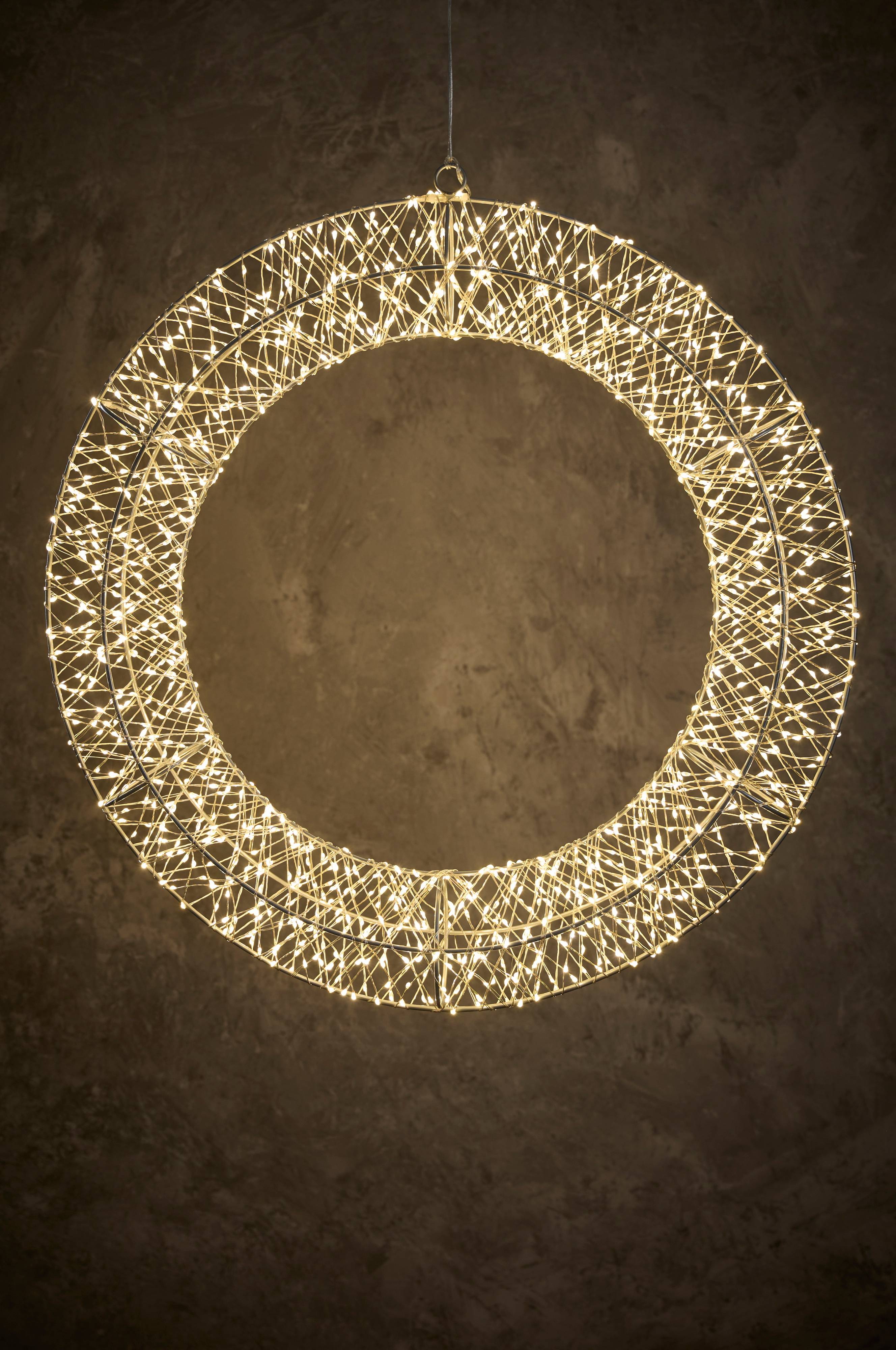 NORDFORM Kranssi, jossa 1440 lediä, halkaisija 50 cm, adapteri ja ajastin