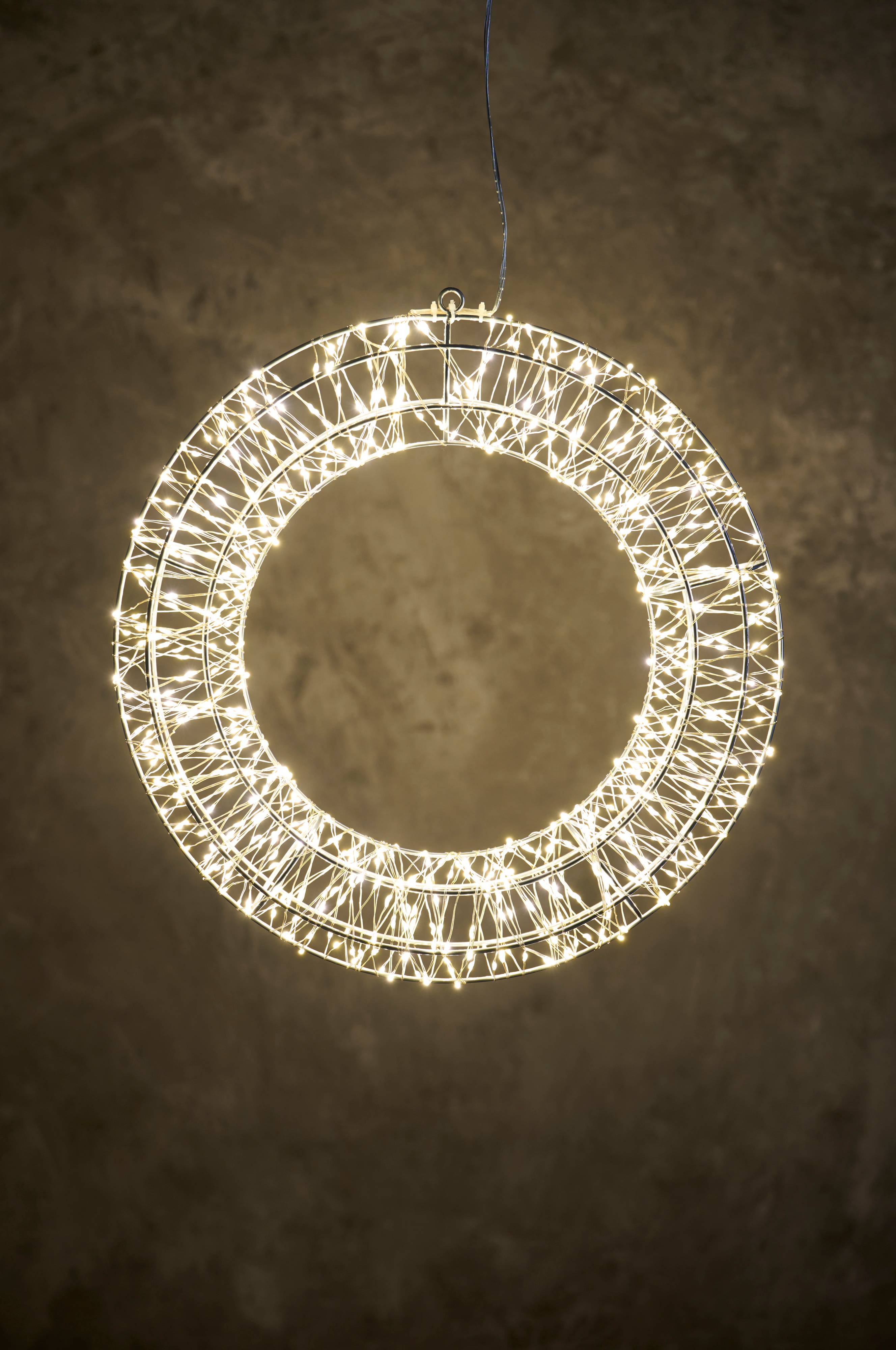 NORDFORM Kranssi, jossa 720-LED-lamppua, halkaisija 38 cm, adapteri ja ajastin