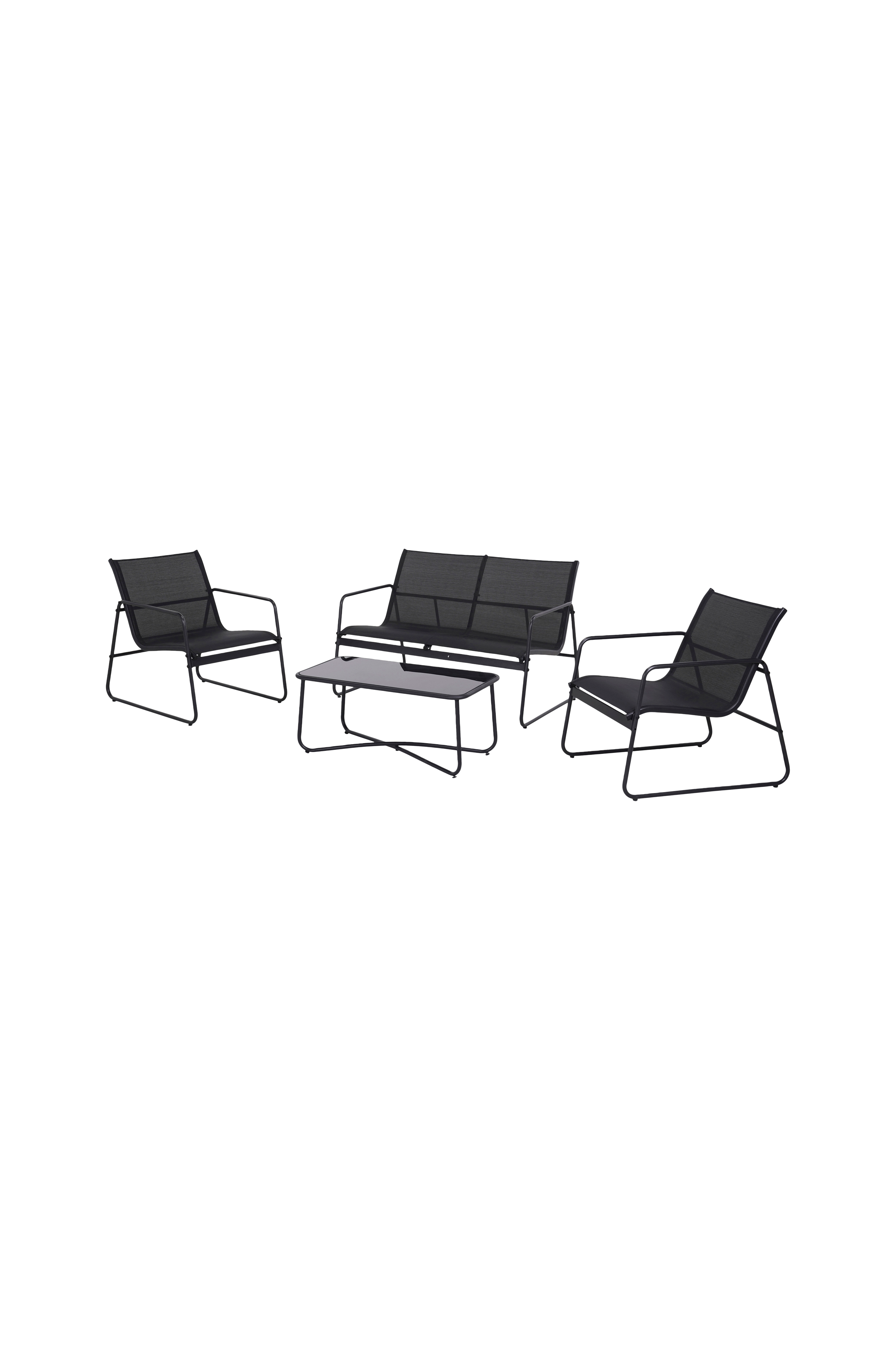 Istuinryhmässä on tyylikäs muotoilu, ja se sopii sekä puutarhaan että ulkotilaan. Tyyliltään luonnollisen ryhmän musta väri luo kauniin kontrastin sitä ympäröivälle luonnolle.