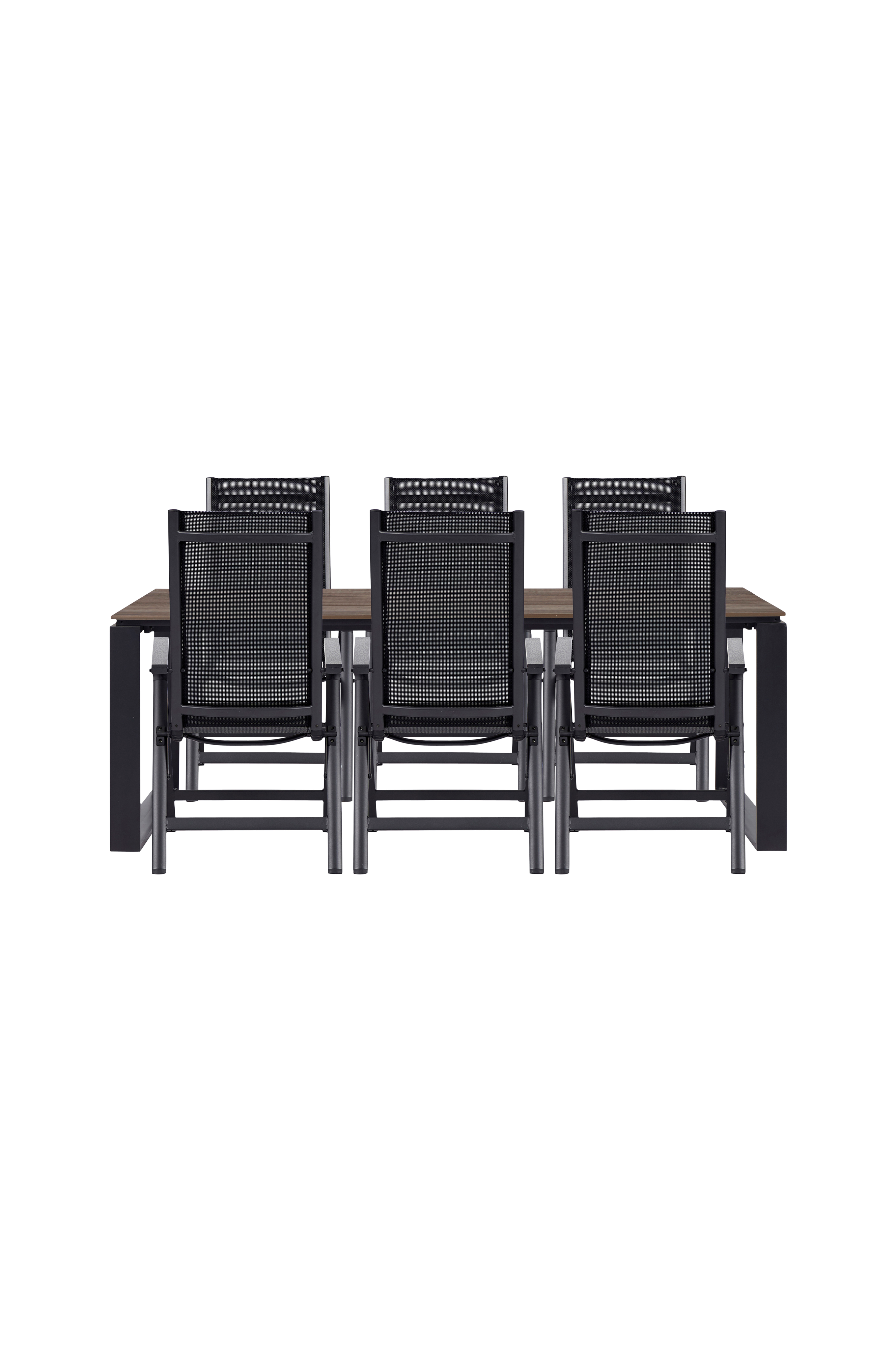 Puutarhatuolissa on musta alumiinirunko ja musta istuinosa napakkaa olefin-verkkokangasta. Verkkomateriaali tekee tuolista mukavan istua, eikä istuintyynyä tarvita.