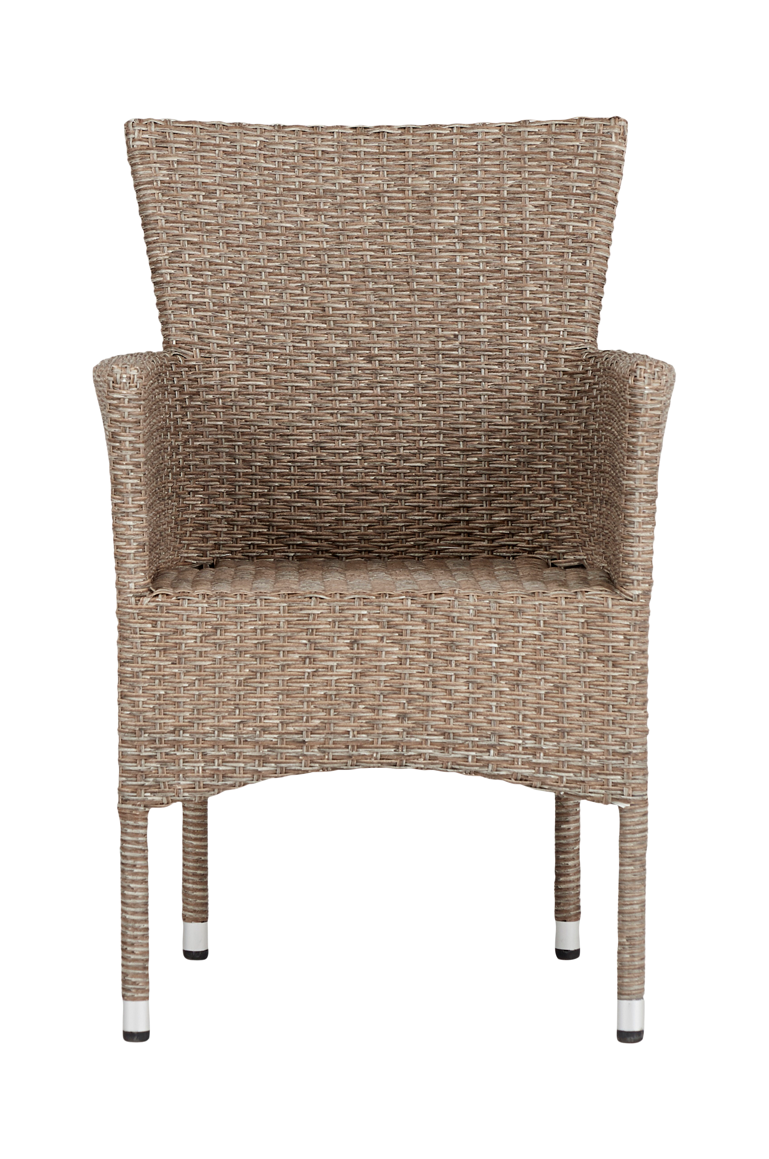 Tyylikäs puutarhatuoli, jossa erittäin mukava klassinen malli. Tuoli sopii yhteen monien erilaisten pöytien ja kokonaisuuksien kanssa. Tuoli on valmistettu metallista ja käsin punotusta polyrottingista, joka on huoltovapaata ja kestävää. Tuolissa on tyylikkäät käsinojat ja mukava selkänoja. Kaikissa neljässä jalassa on metalliyksityiskohta alhaalla. Tuoli on ontto ja pinottava, mikä helpottaa säilyttämistä.