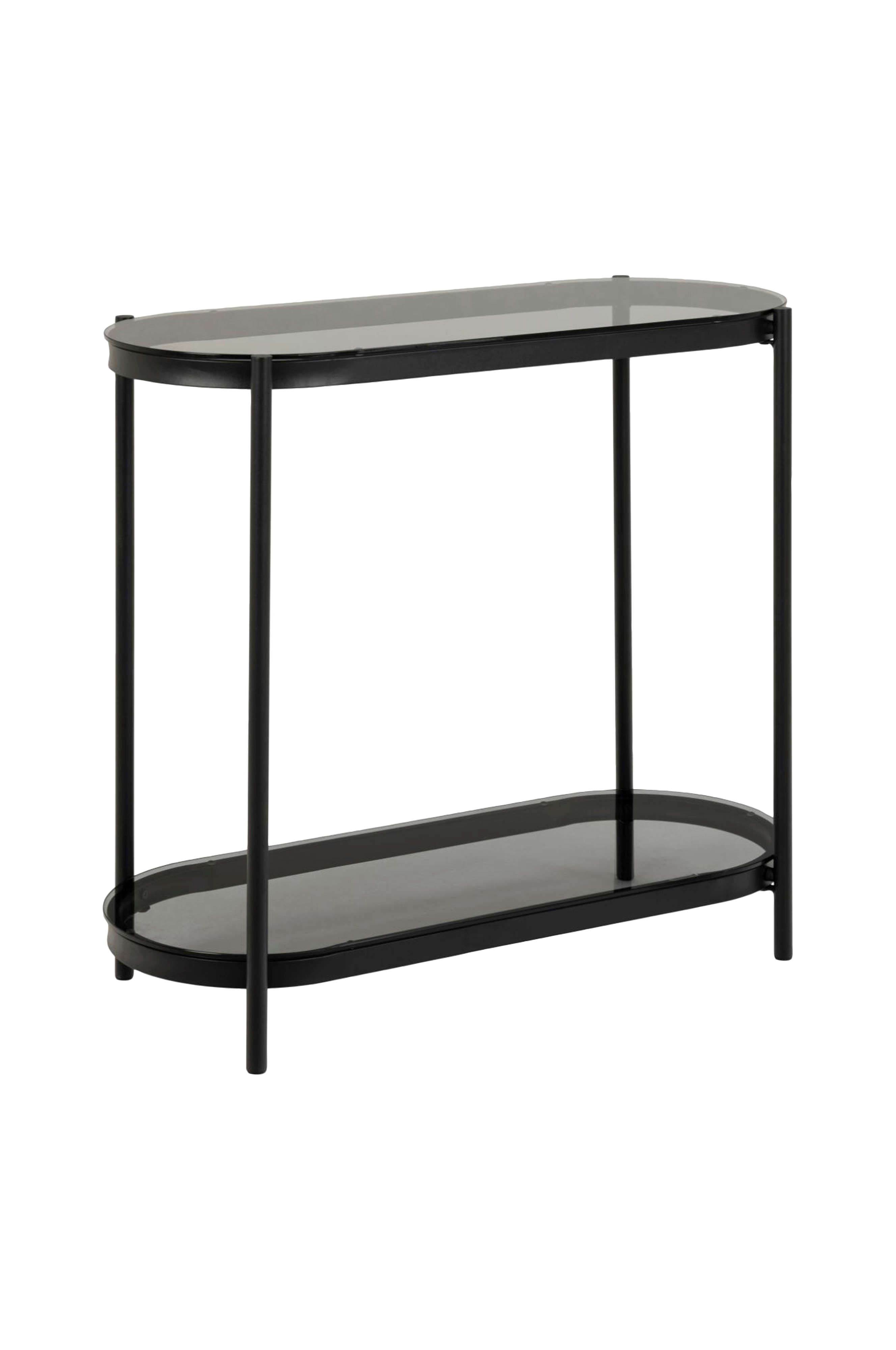 Kaunis sivupöytä luo olohuoneeseen viihtyisää tunnelmaa. Savunvärisestä lasista ja jauhemaalatusta metallista valmistettu sivupöytä sopii moderniin sisustukseen. Pöytälevyn alla olevalla savunvärisellä lasihyllyllä on säilytystilaa. Toimitetaan osina.