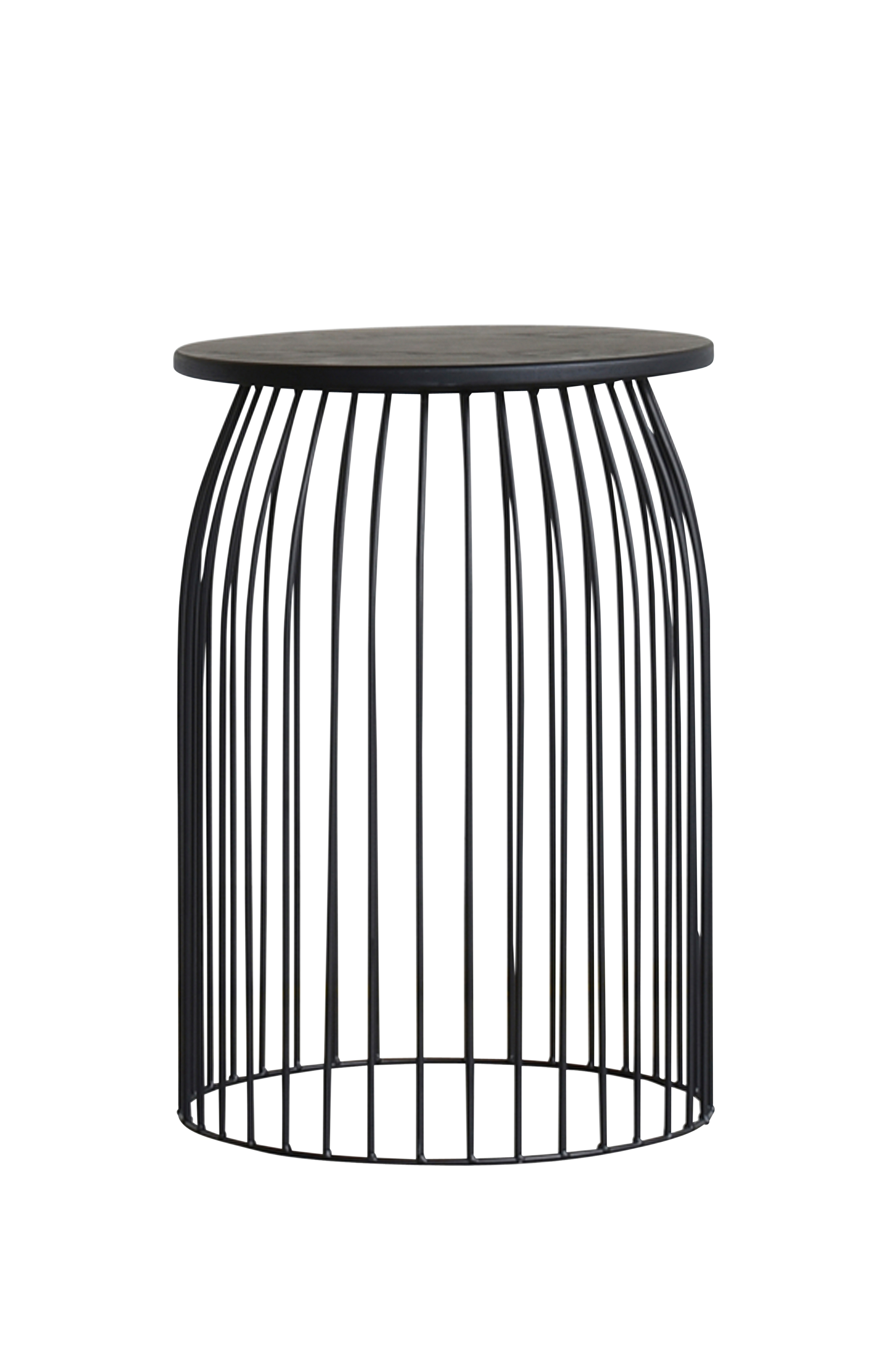 Moderni sivupöytä, jonka pöytälevy tammiviilua ja runko jauhemaalattua metallia. Yksinkertaisen tyylikäs muotoilu sopii täydellisesti moderniin olohuoneeseen.