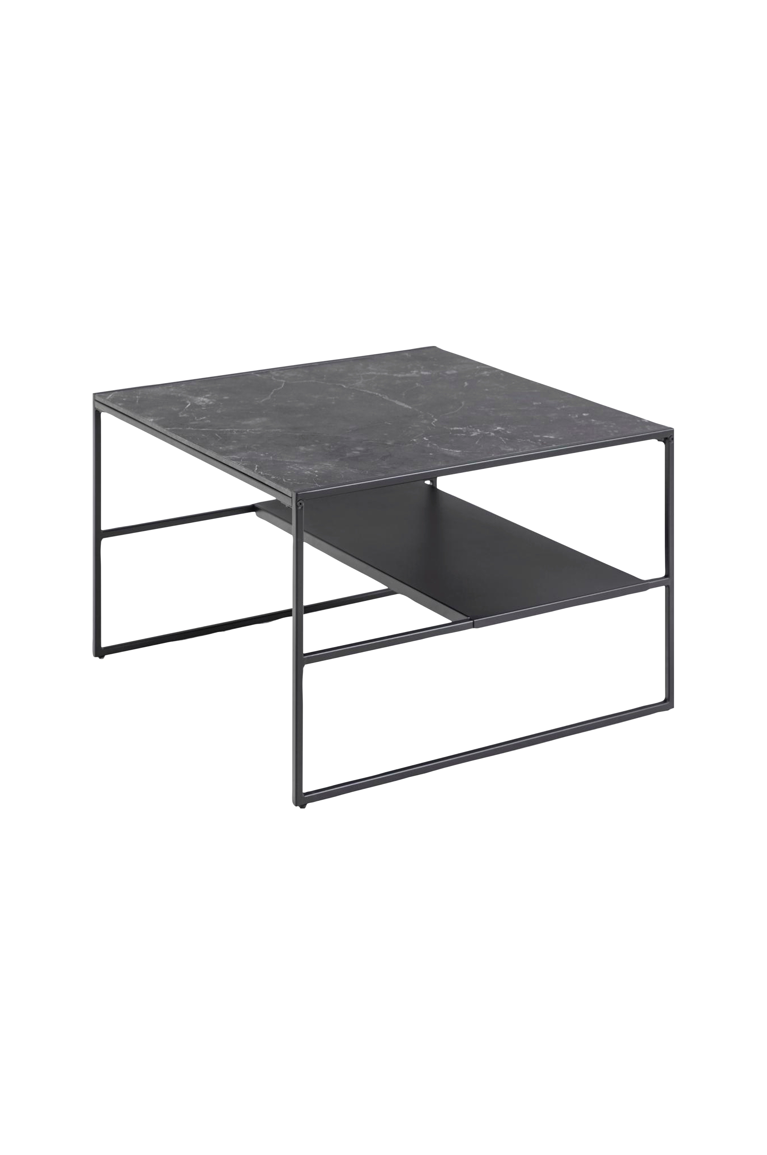 Luo teollishenkistä tunnelmaa tällä sohvapöydällä. Suorat linjat, marmorikuvio ja musta jauhemaalattu metalli saavat sohvapöydän sopimaan lähes kaikkiin olohuoneisiin. Pöydässä on myös säilytyshylly. Anna pöydälle lämmin ilme asettamalla sille leikkokukkia, eläviä kynttilöitä tai suosikkiesineitäsi. Pöytälevy kalvopinnoitettua MDF-levyä.