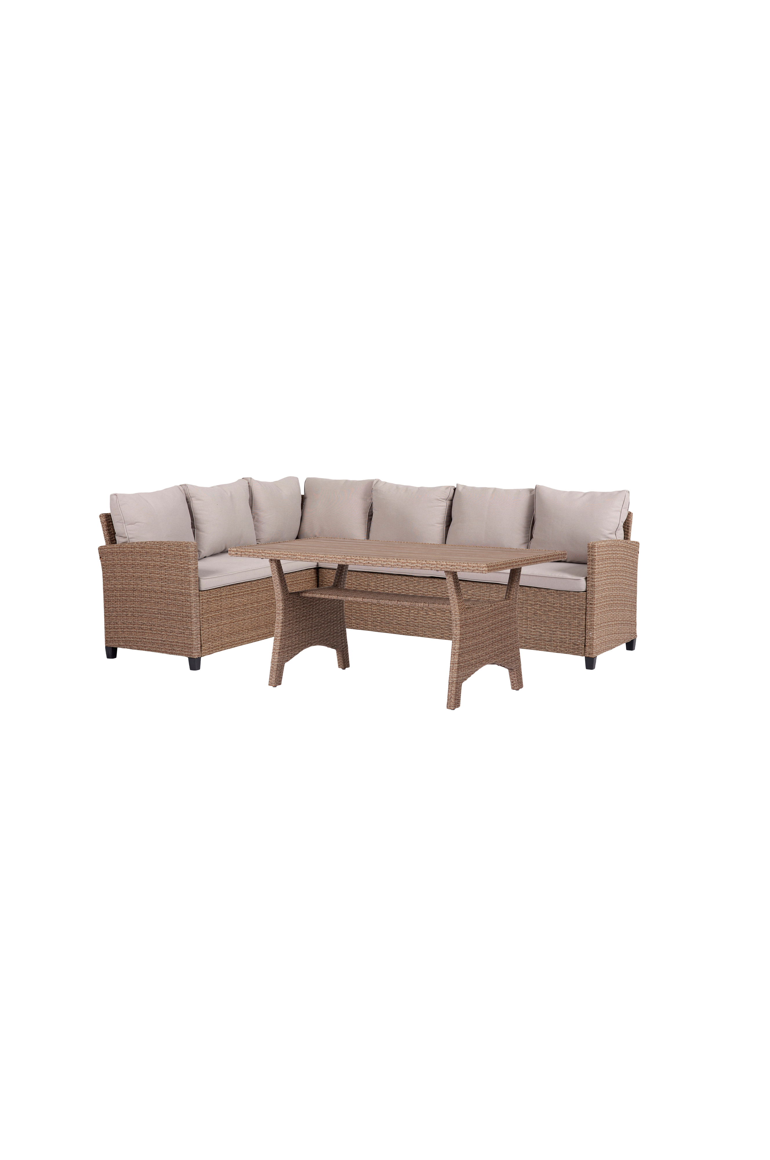 Setti on huoltovapaa, mutta suosittelemme käyttämään päällistä tai säilyttämään kalusteet sisällä talvella. Ota myös pehmusteet sisälle sateella.