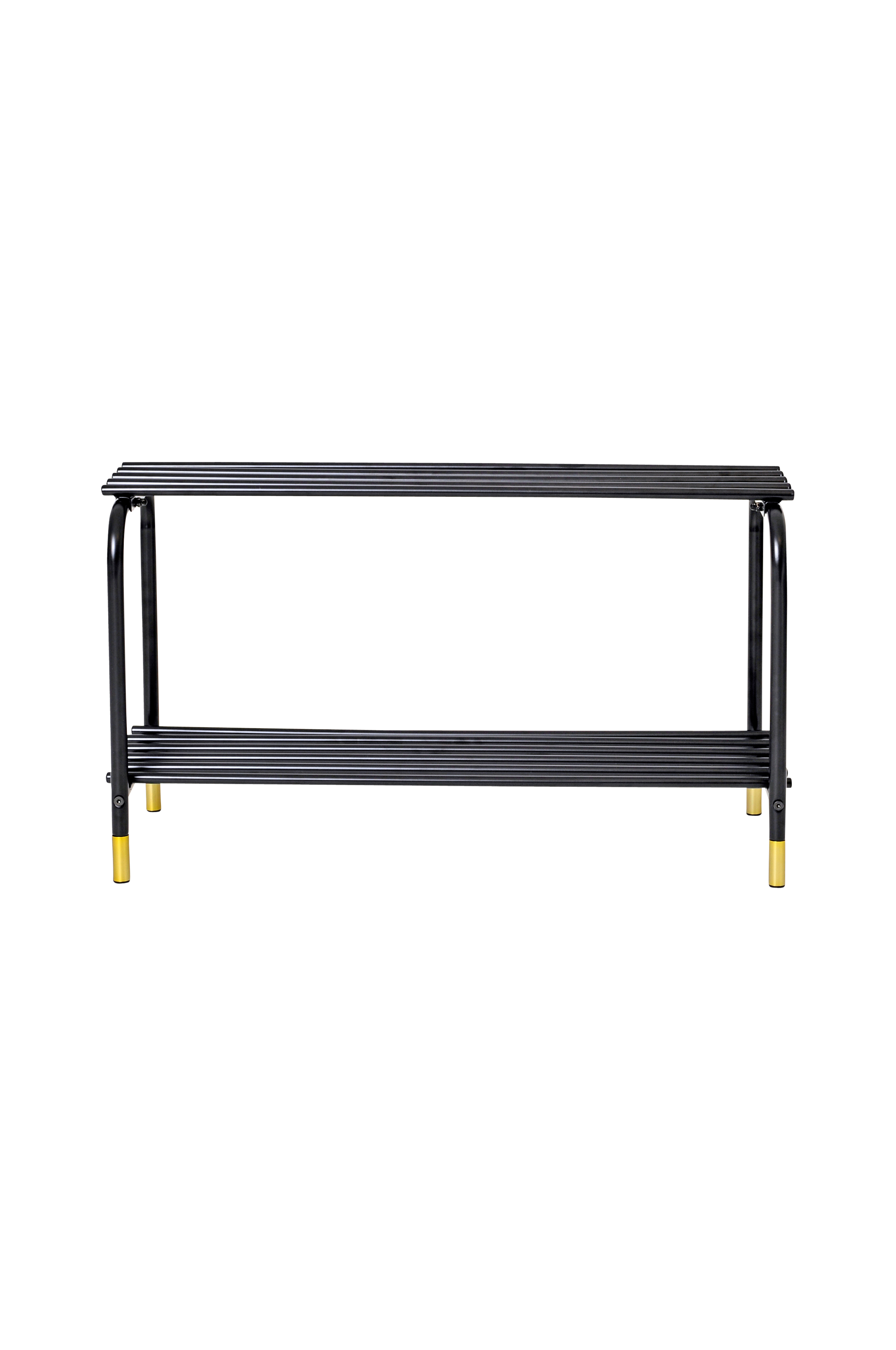 Kenkähylly mattapintaiseksi maalattua metallia. Jaloissa tyylikkäät messinginväriset yksityiskohdat.