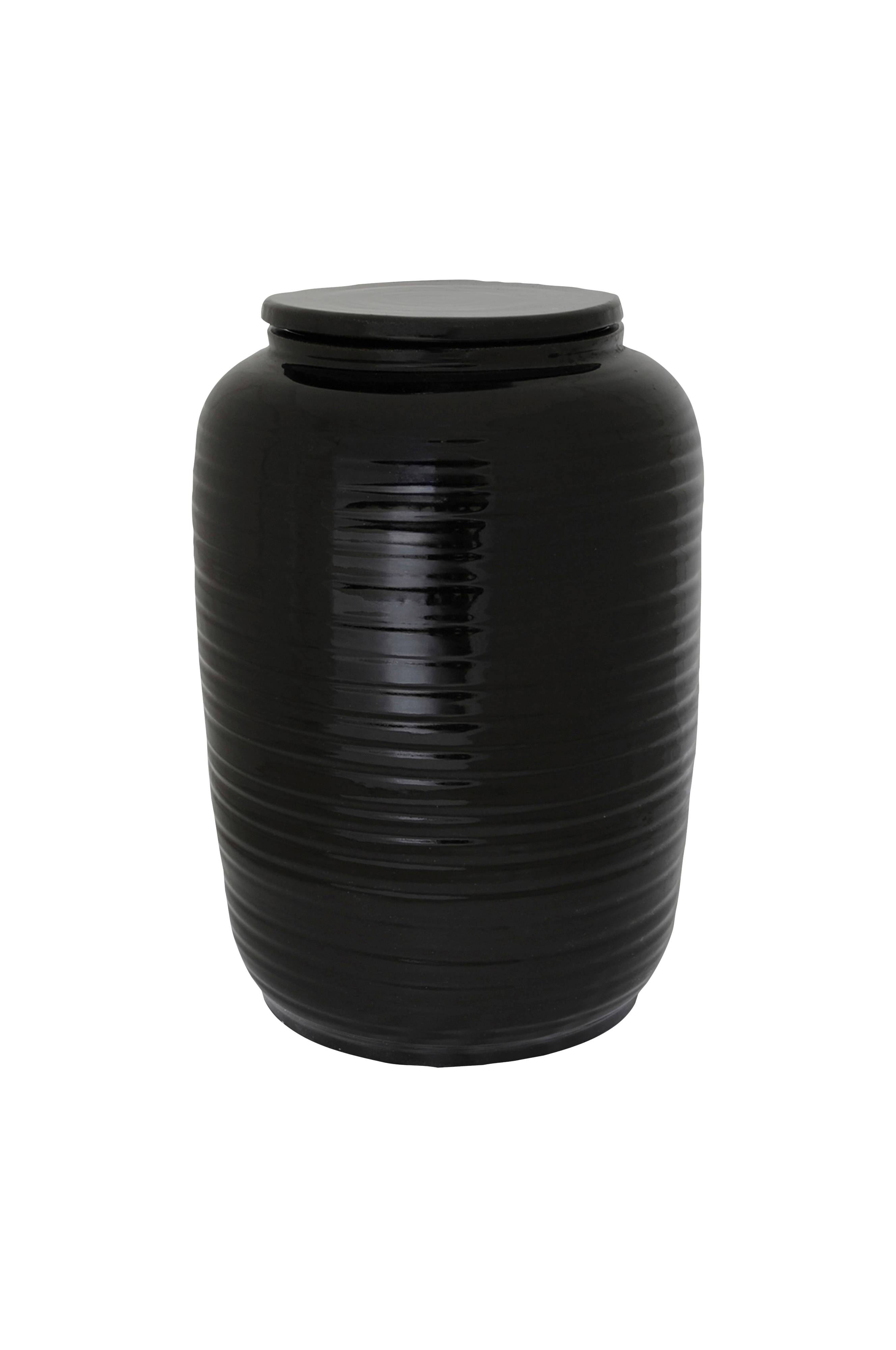 Kiiltäväpintainen kannellinen keramiikkaruukku. Leveys 31 cm, syvyys 31 cm ja korkeus 45 cm.