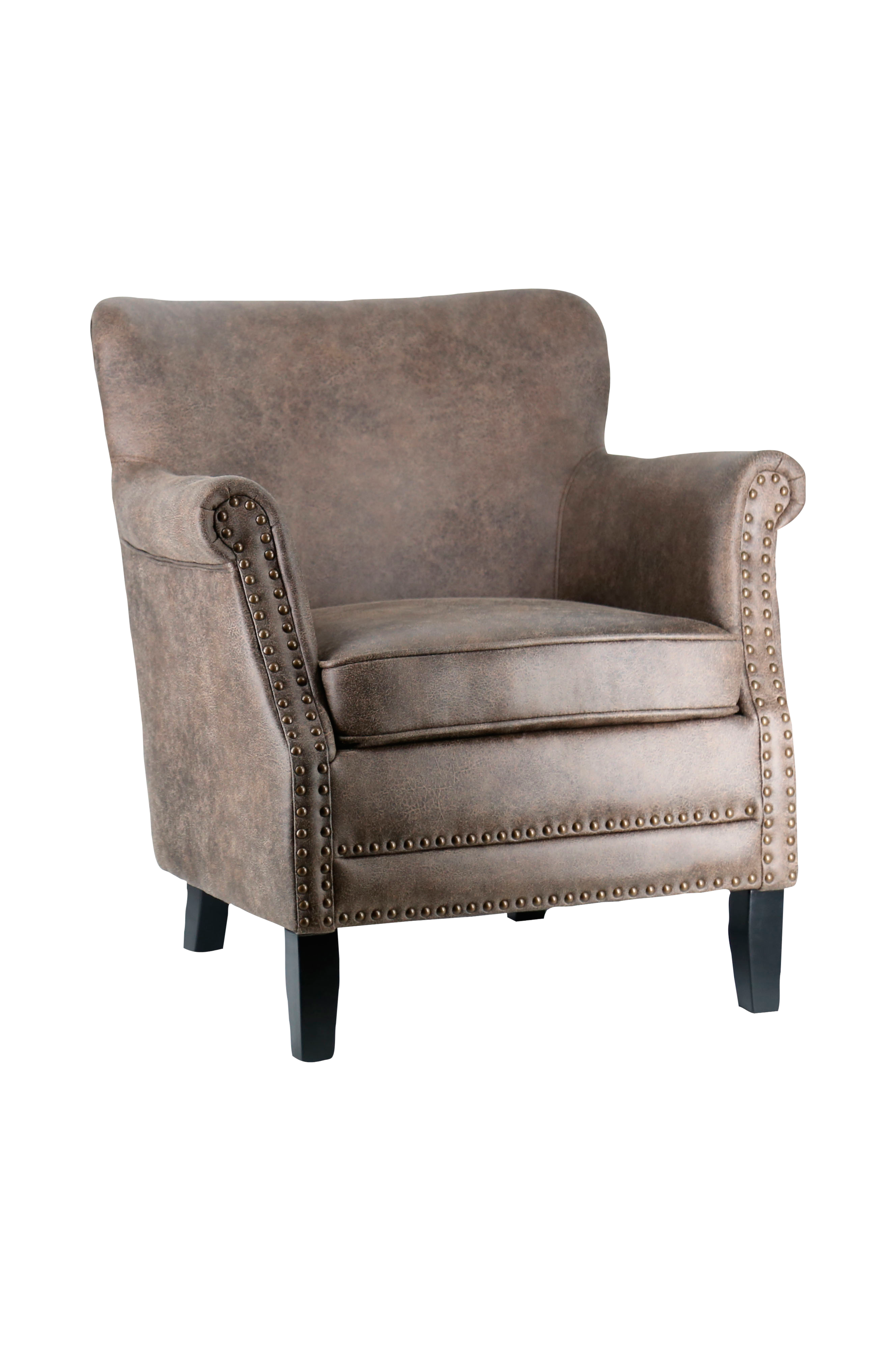 Siro kangaspäällysteinen nojatuoli, jossa on mukava istua. Koristeniitit antavat tuolille vintagehenkisen ilmeen. Leveys 78 cm, syvyys 74 cm ja korkeus 78 cm. Polyesterisamettia.