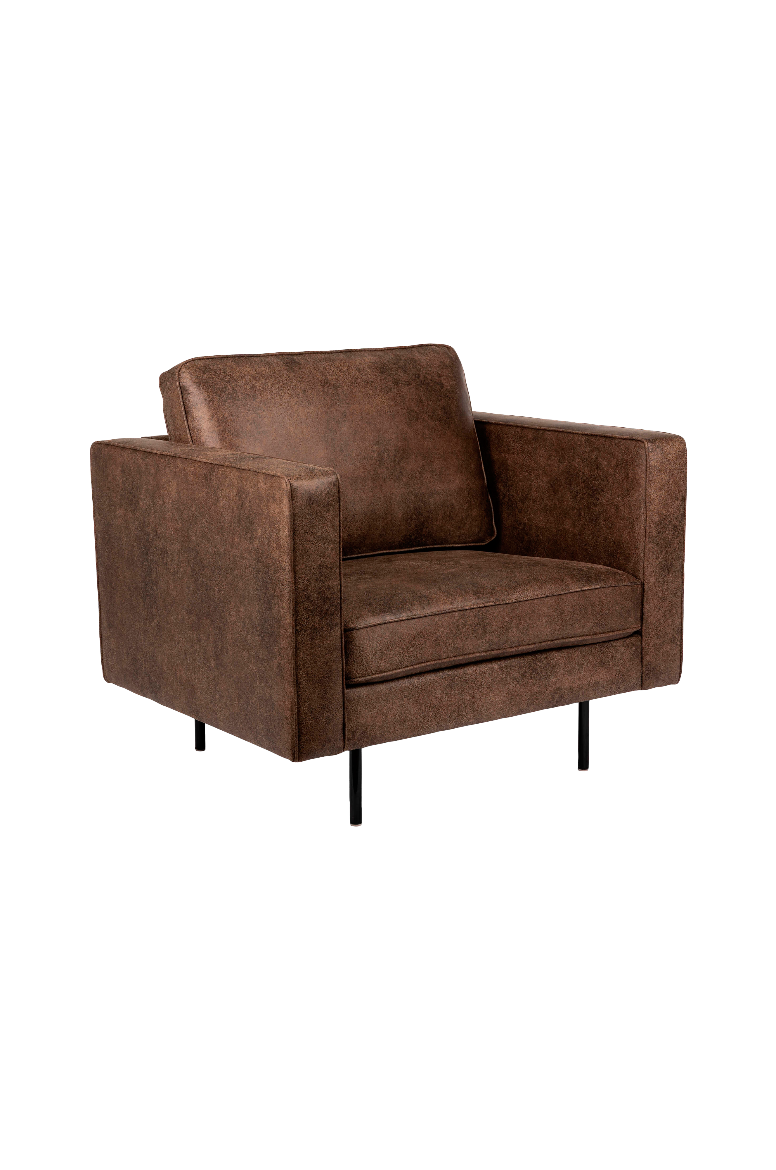 Tyylikästä mikrokuitua. Irrotettavat selkätyynyt, joissa polyesterikuitutäyte. Selkätyynyt voidaan halutessa kiinnittää vetoketjulla. Istuimessa vaahtomuovi. Metallijalat.