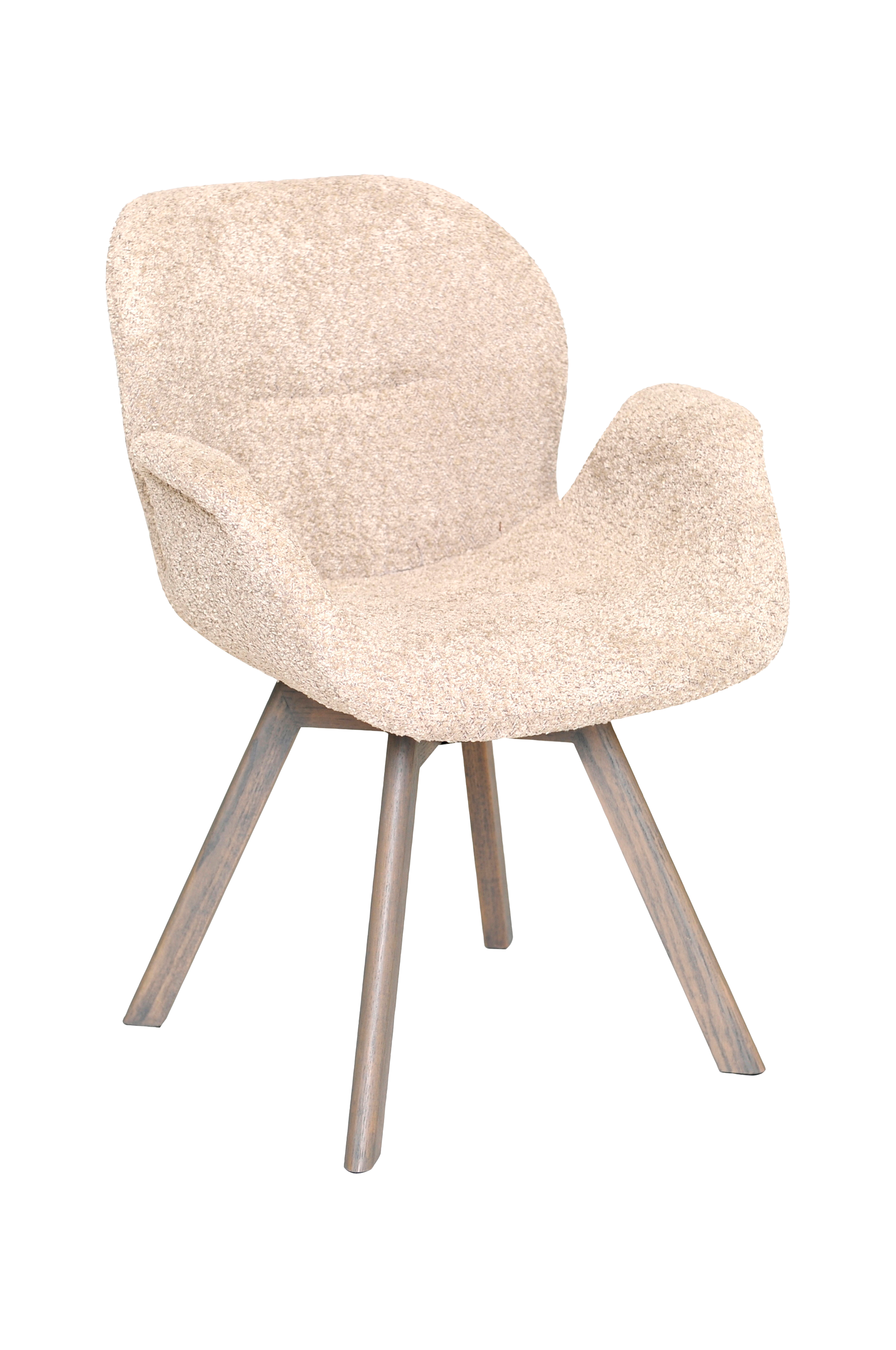 Ruokailutuoli pehmeää ja kestävää kangasta ja lakattuja tammijalkoja.