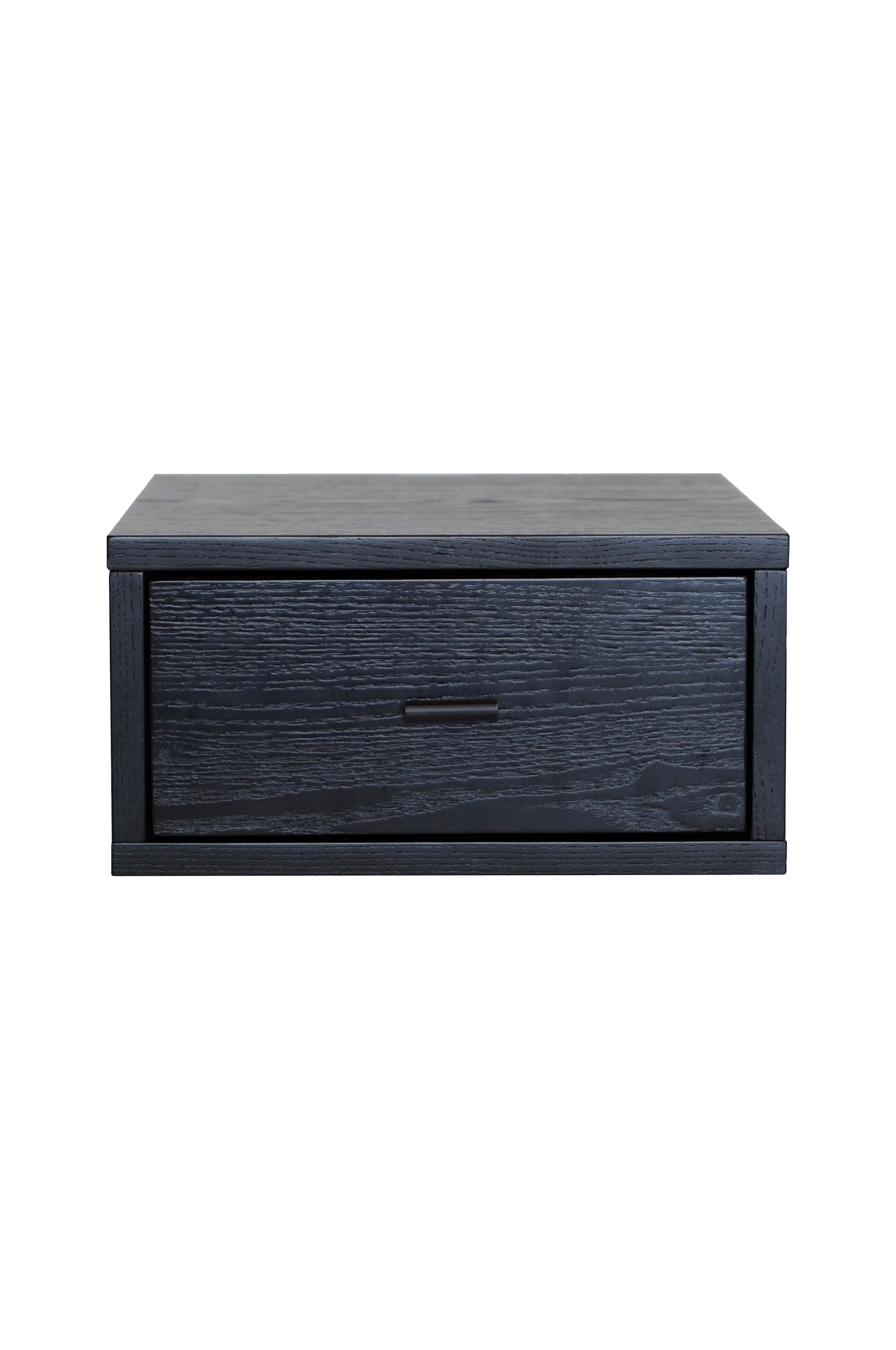 Moderni yöpöytä lakattua tammea. Helppo asentaa seinälle.