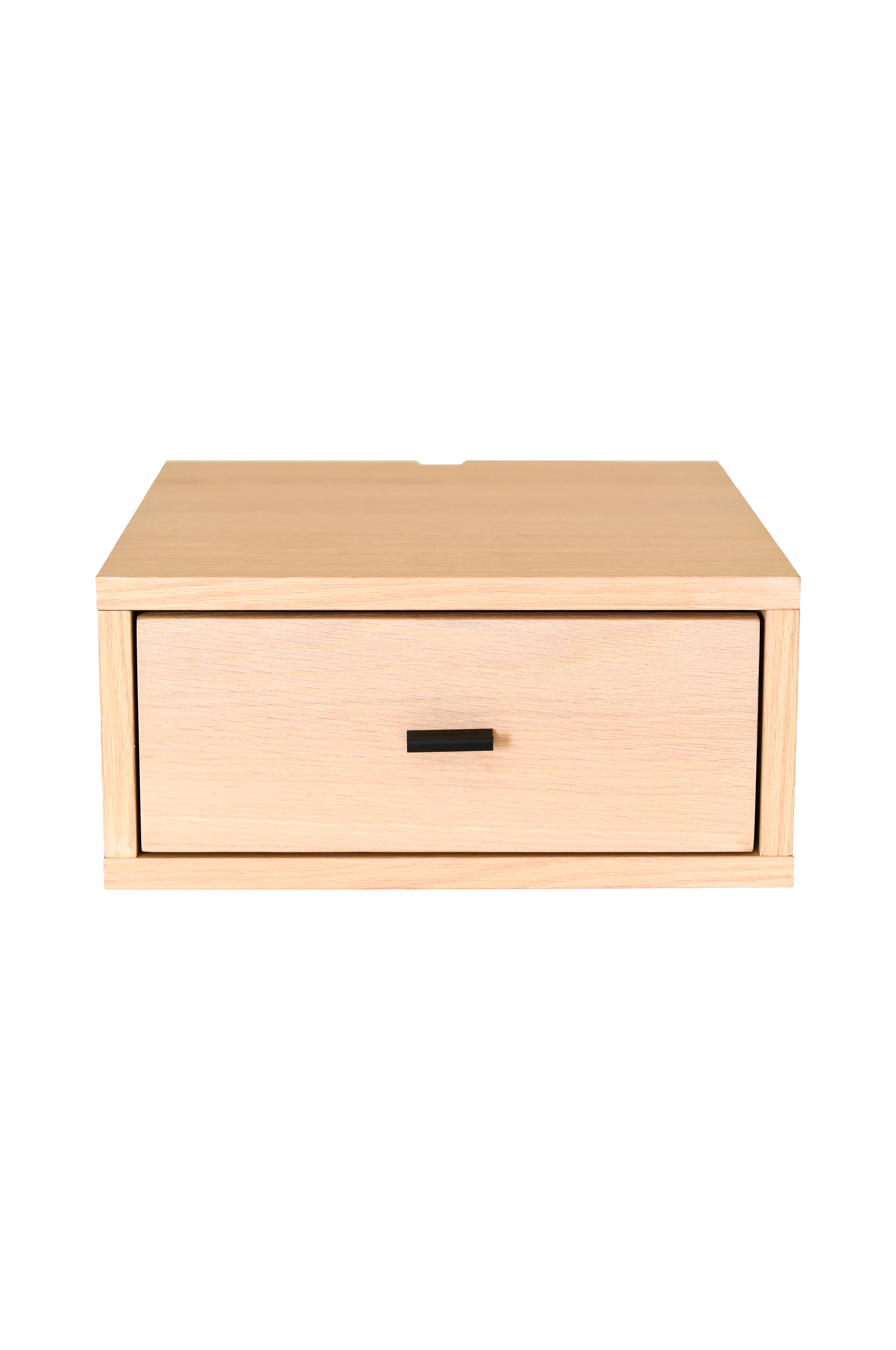 Moderni yöpöytä lakattua tammea. Helppo asentaa seinälle.