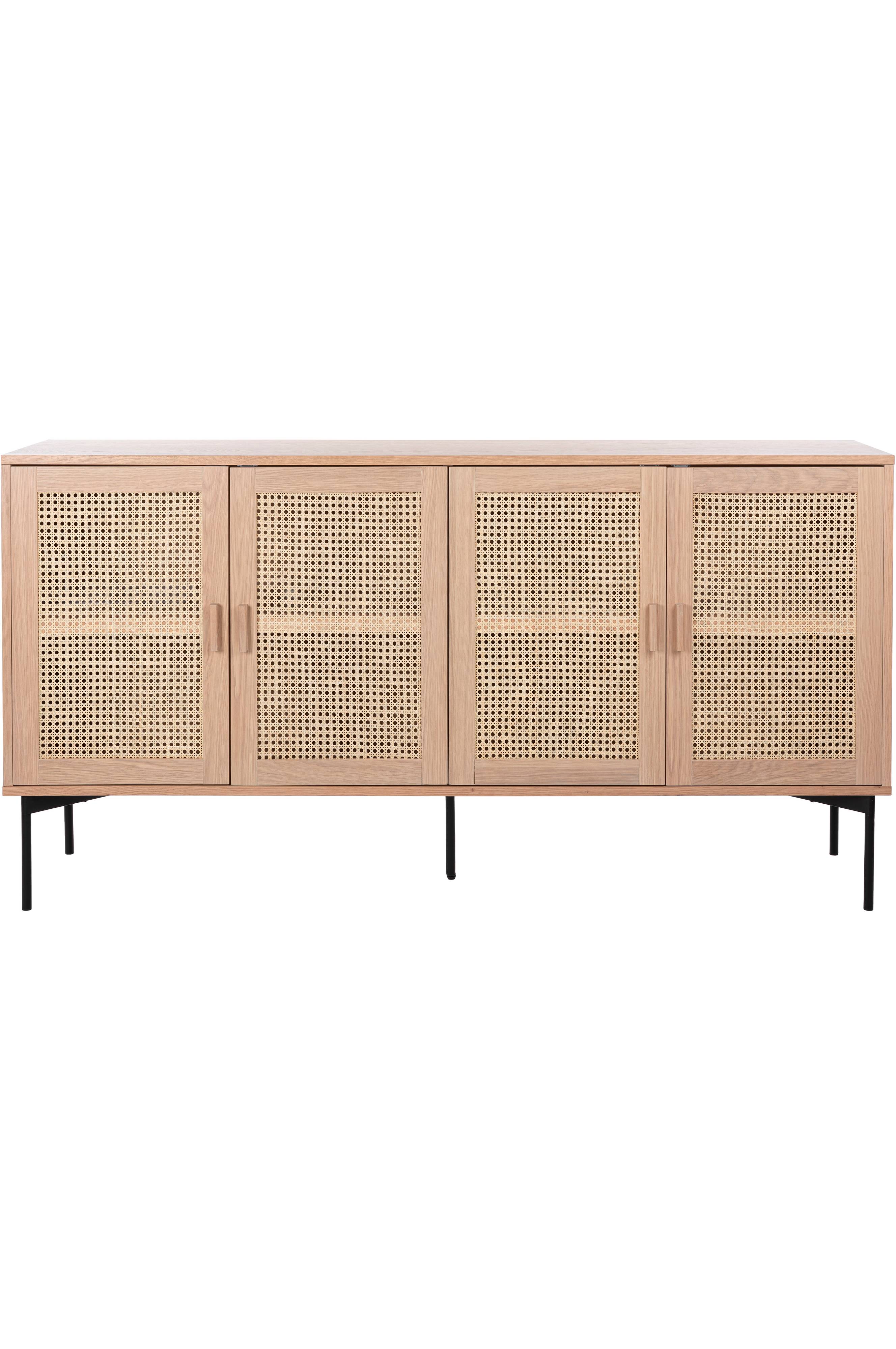 Senkki lakattua tammea, rottinkia ja metallia. 4 ovea.