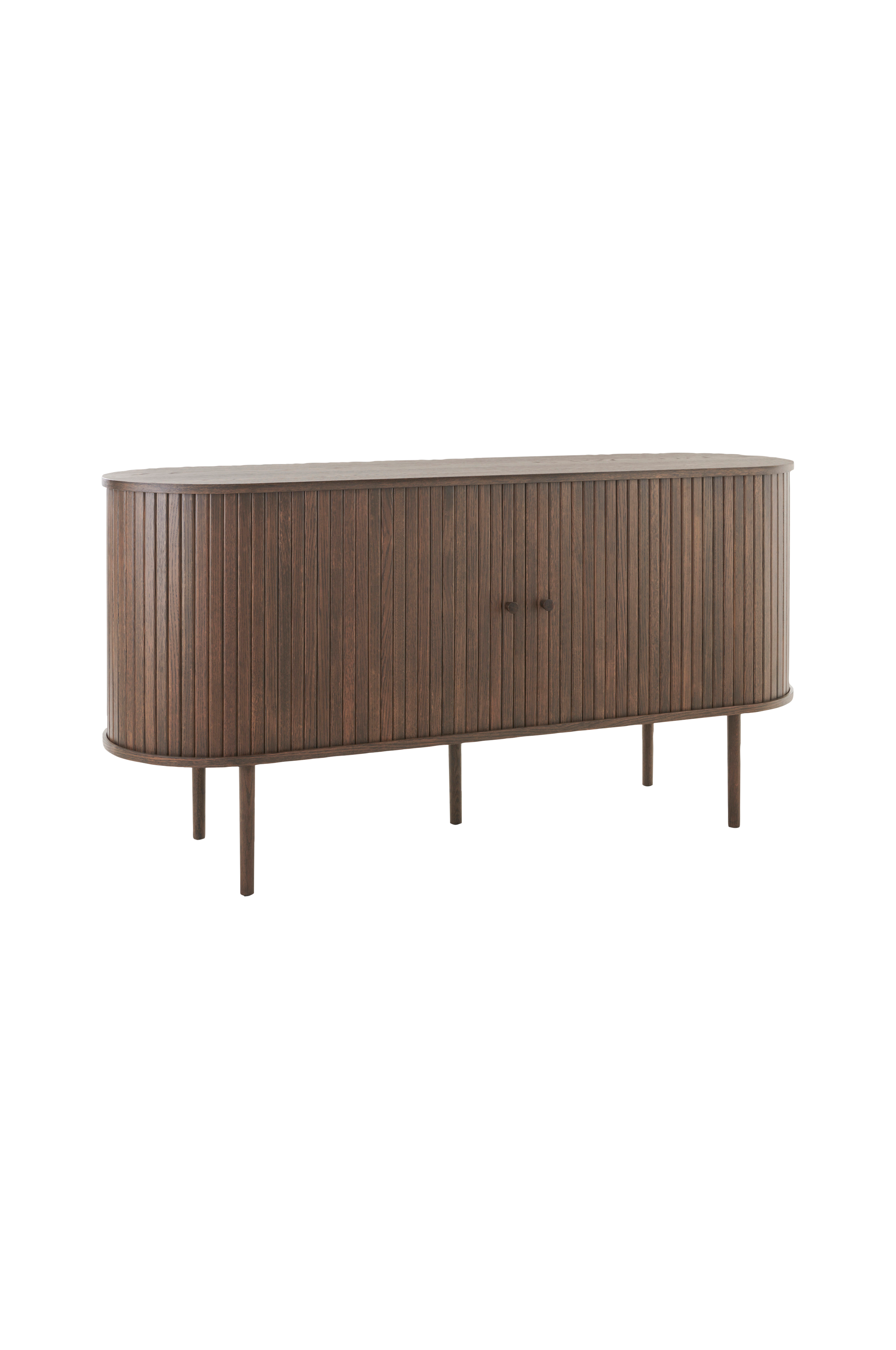 Trendikäs lipasto, jossa on liukuovet.