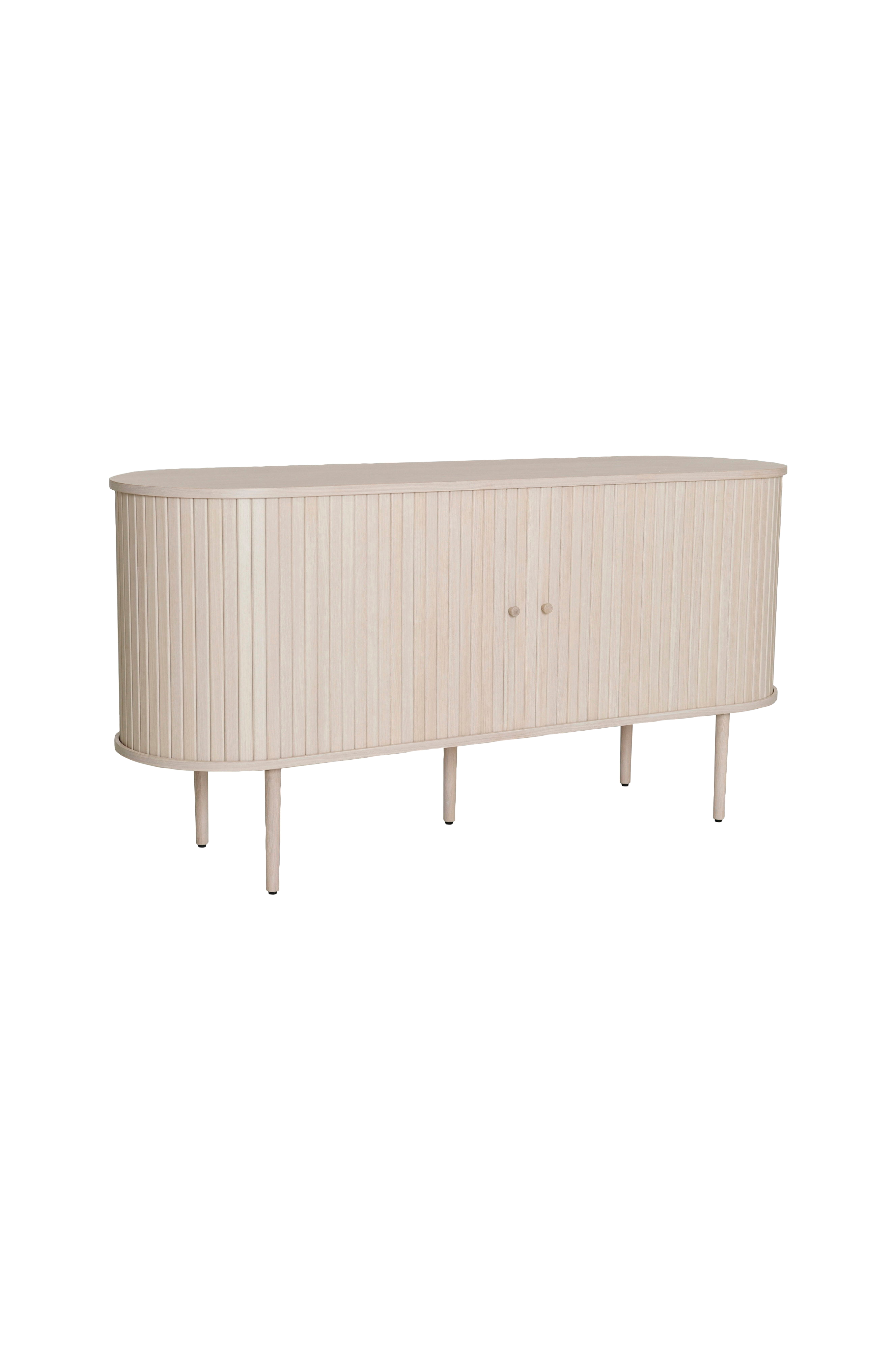 Trendikäs lipasto, jossa on liukuovet.