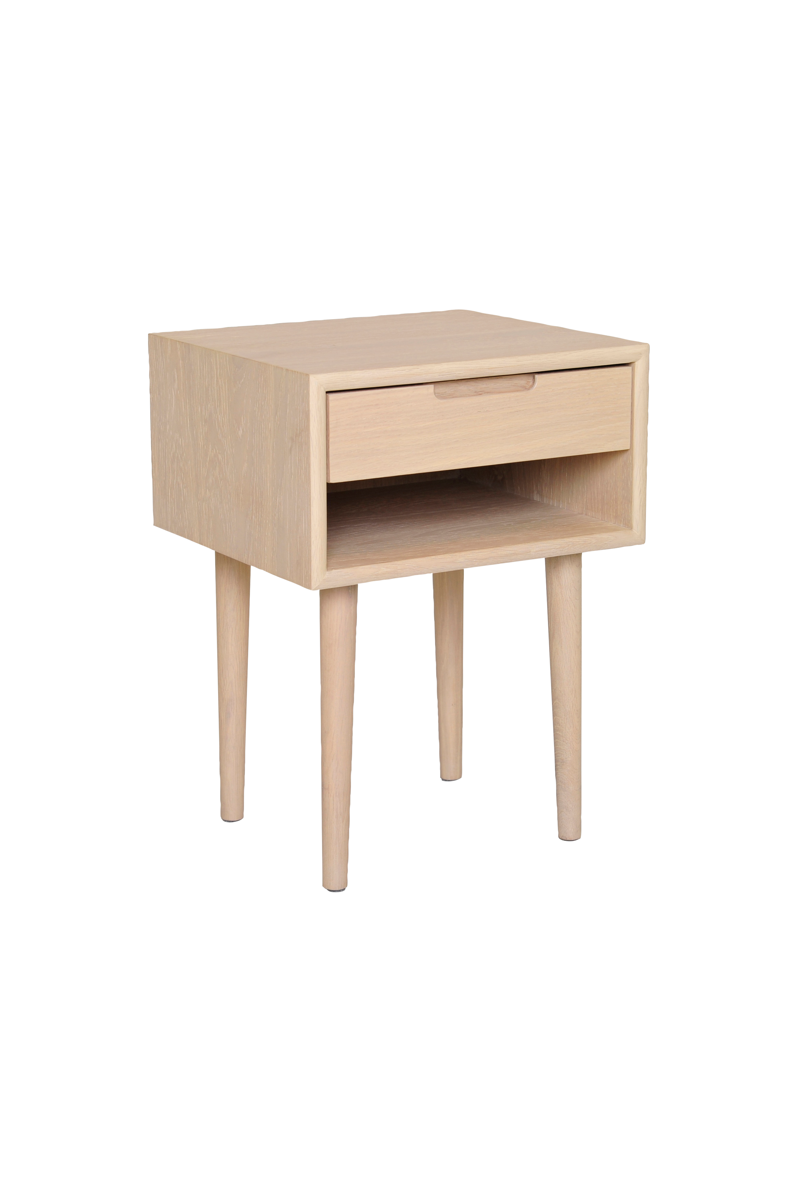 Yöpöytä, jossa laatikko & hylly. Maalattua tammea.