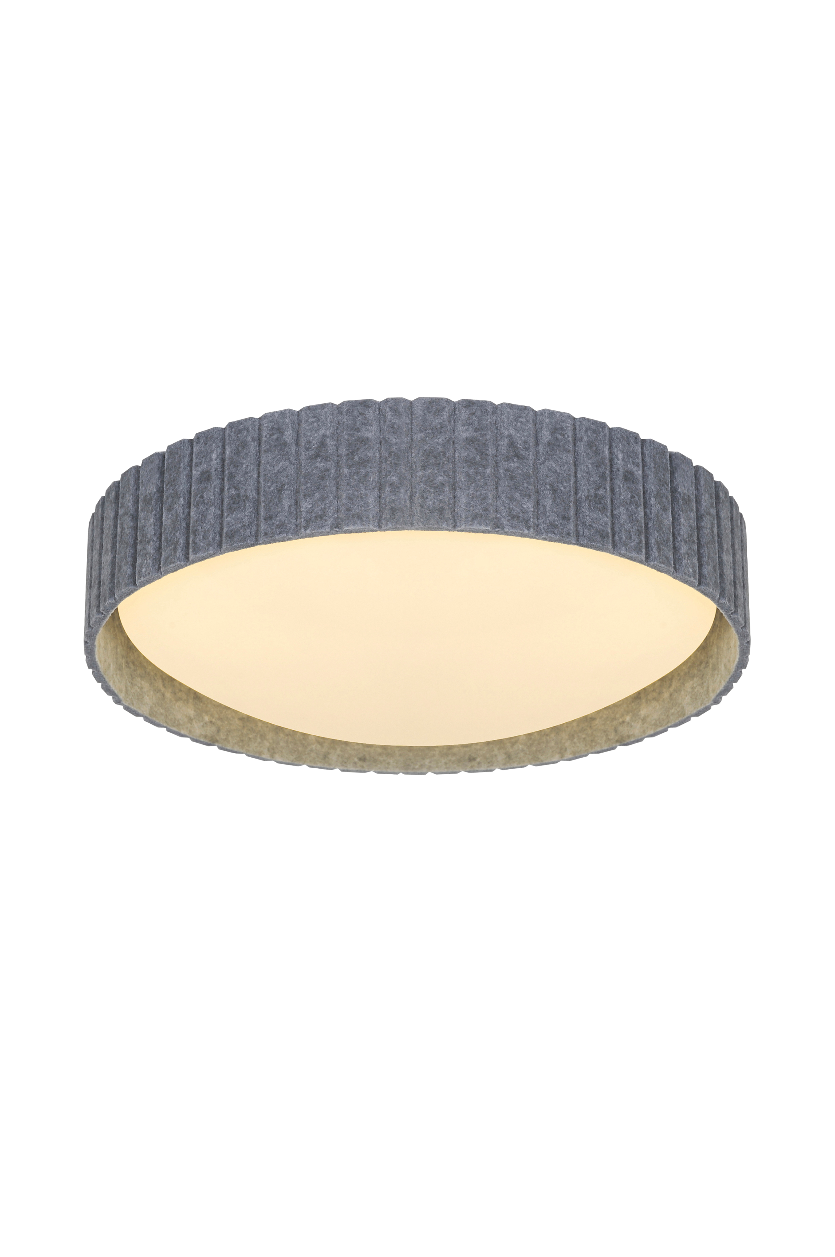 Corato on erilainen näkemys kattovalaisimesta - perinteinen muoto, mutta mielenkiintoinen materiaalien yhdistelmä. Varjostin on valmistettu muovista, ja sitä ympäröi huopa, joka luo pehmeän ja koristeellisen ilmeen. Muovinen varjostin takaa pehmeän ja hajavalon.