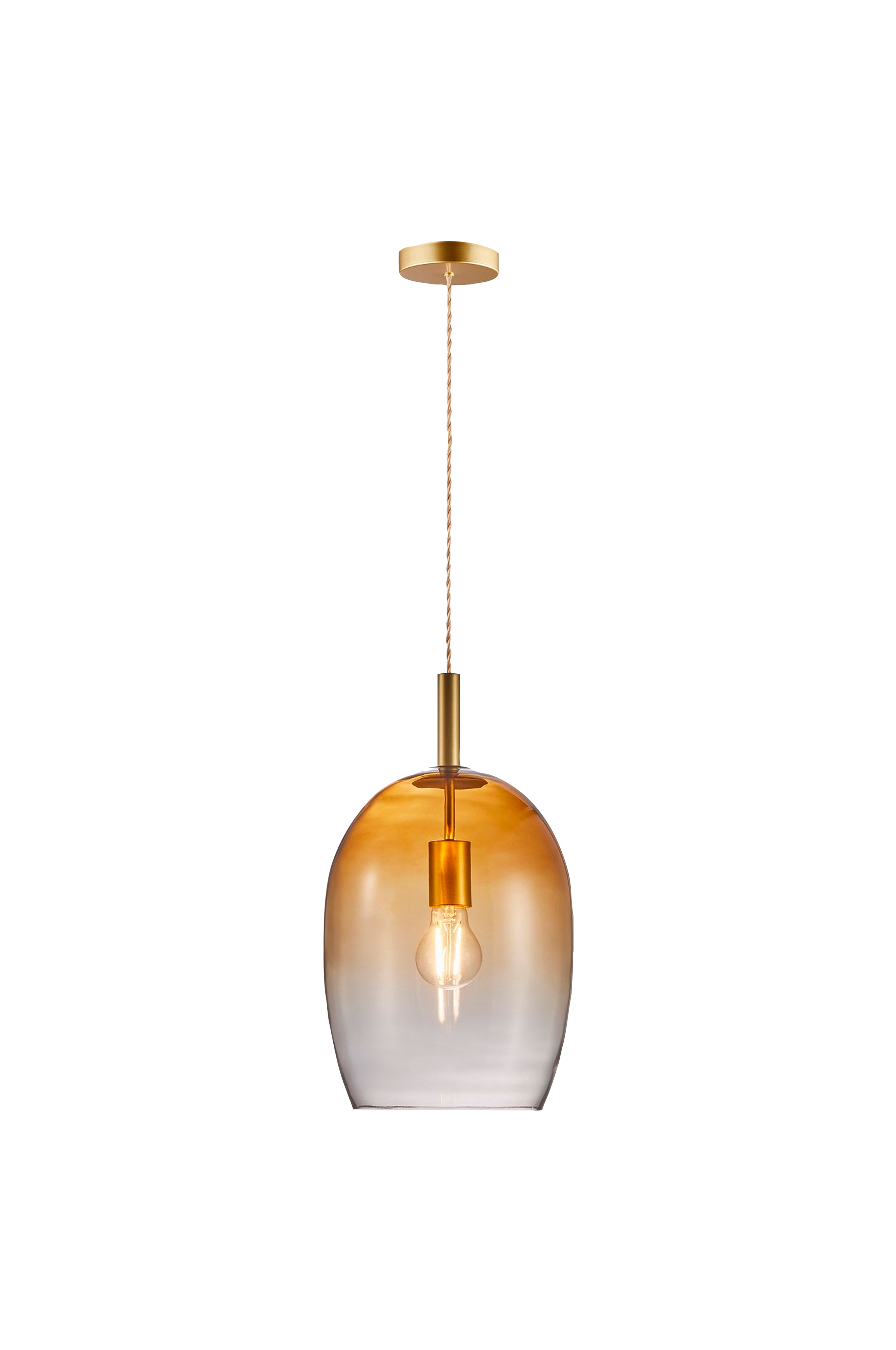 Uma-sarjan riippuvalaisin lisää modernin ja koristeellisen vivahteen klassiseen riippuvalaisimeen. Suupuhalletussa lasivarjostimessa on tyylikäs, soikea muoto, joka kehystää valon kauniilla tavalla.