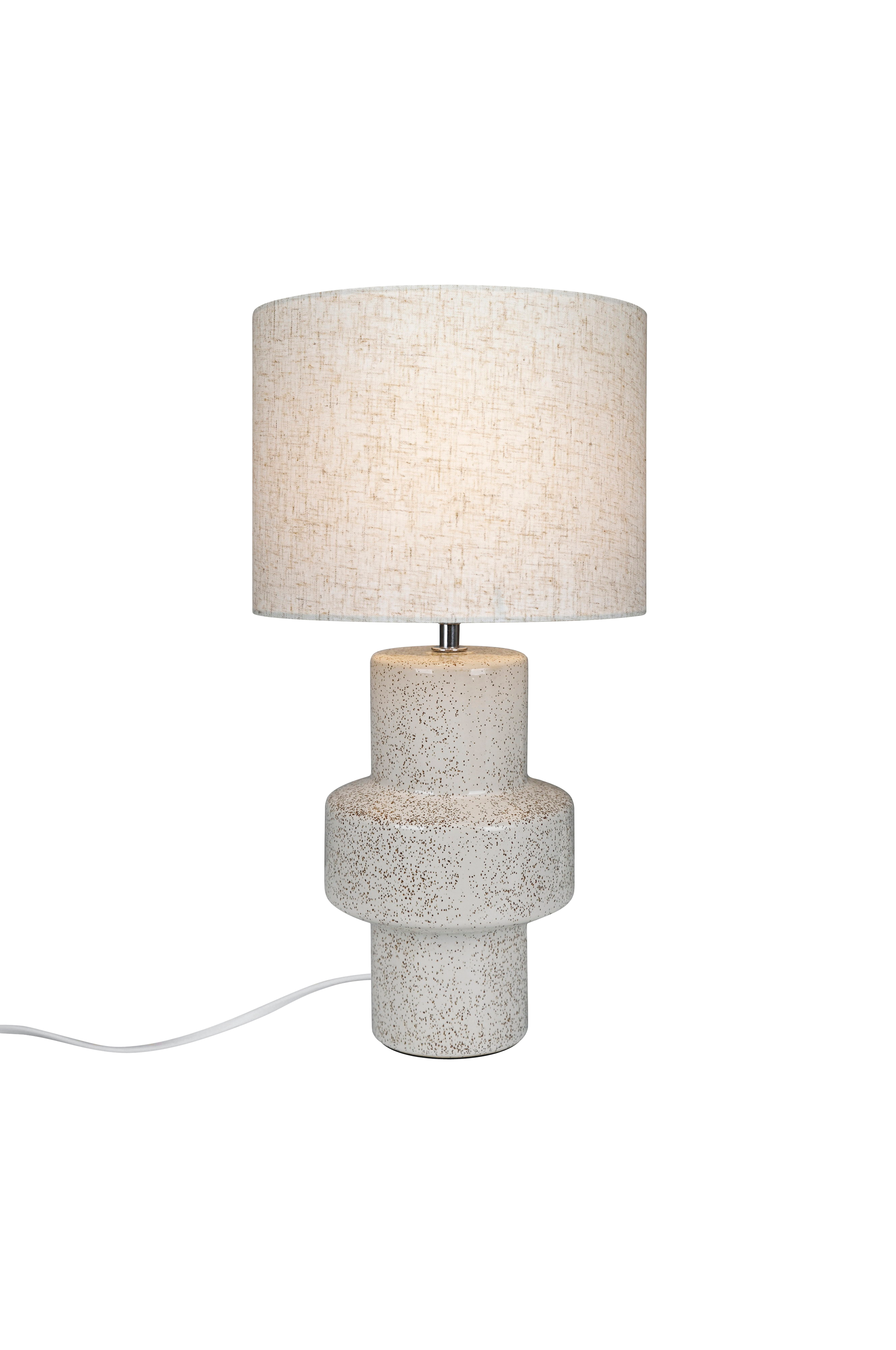 Dugan on klassinen pöytävalaisin modernilla twistillä. Jalusta on valmistettu kiiltävästä keramiikasta, ja sen muoto on kiehtova, kun taas klassinen kangasvarjostin takaa lämpimän, hajavalon.